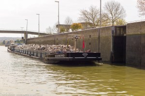 Die grossen Schleusen mit Berufsverkehr werden entweder lokal oder über eine Steuerzentrale gesteuert. In diesem Falle ruft man die jeweilige Schleuse über einen speziellen VHF Kanal an (oft 18, 20 oder 22). Wenn man zusammen mit Frachtschiffen in der Schleuse ist, ist höchste Aufmerksamkeit geboten. Im Zweifel sollte man sich mit dem Schleusenwärter oder dem Frachtschiff absprechen über Kanal 10. Auf jeden Fall sollte man dem Frachtschiff den Vorrang lassen, abwarten bis sich das Wasser beruhigt hat und in guter Distanz festmachen. Die Berufsfahrer haben es meistens eilig, trotzdem sollte man sich nicht stressen lassen. Allerdings zügiges Handeln mit klarem eindeutigen Verhalten ist angebracht.