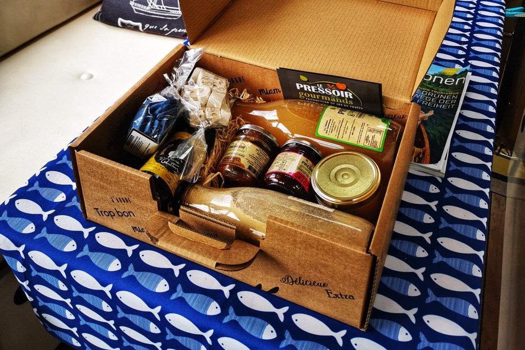 - Am nächsten Tag, oh welch eine Überraschung, erhalten wir alle im Namen der Stadtverwaltung „ein Fresspaket“ mit typischen Produkten aus den Ardennen.