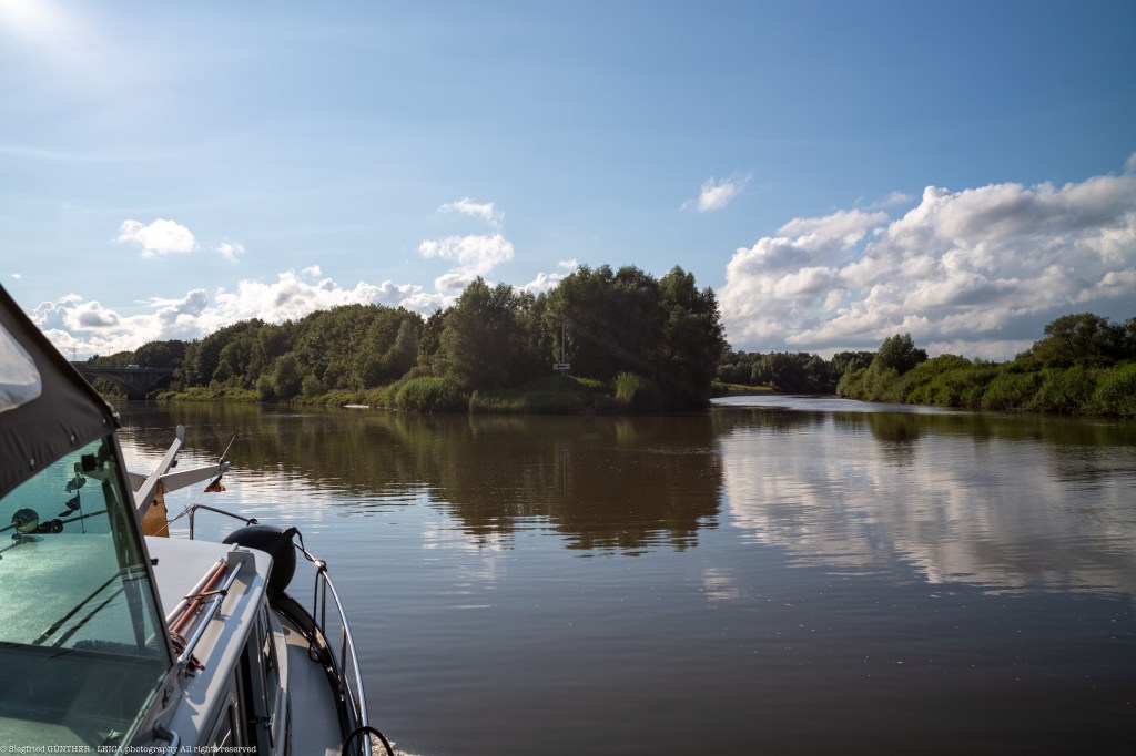 Nach 1 Stunde nehmen wir Fahrt auf. Wir kommen jetzt bei Regen und Gegenwind mit 14 km/h voran. Die Geschwindigkeit nimmt mit dem weiteren Vorankommen auf den letzten Kilometern wieder langsam ab. Als wir den Meldepunkt MELLE erreichten, sind wir bei unserer „normalen“ Reisegeschwindigkeit angelangt (Wassergeschwindigkeit = „Speed over Ground SOG = 10km/h).