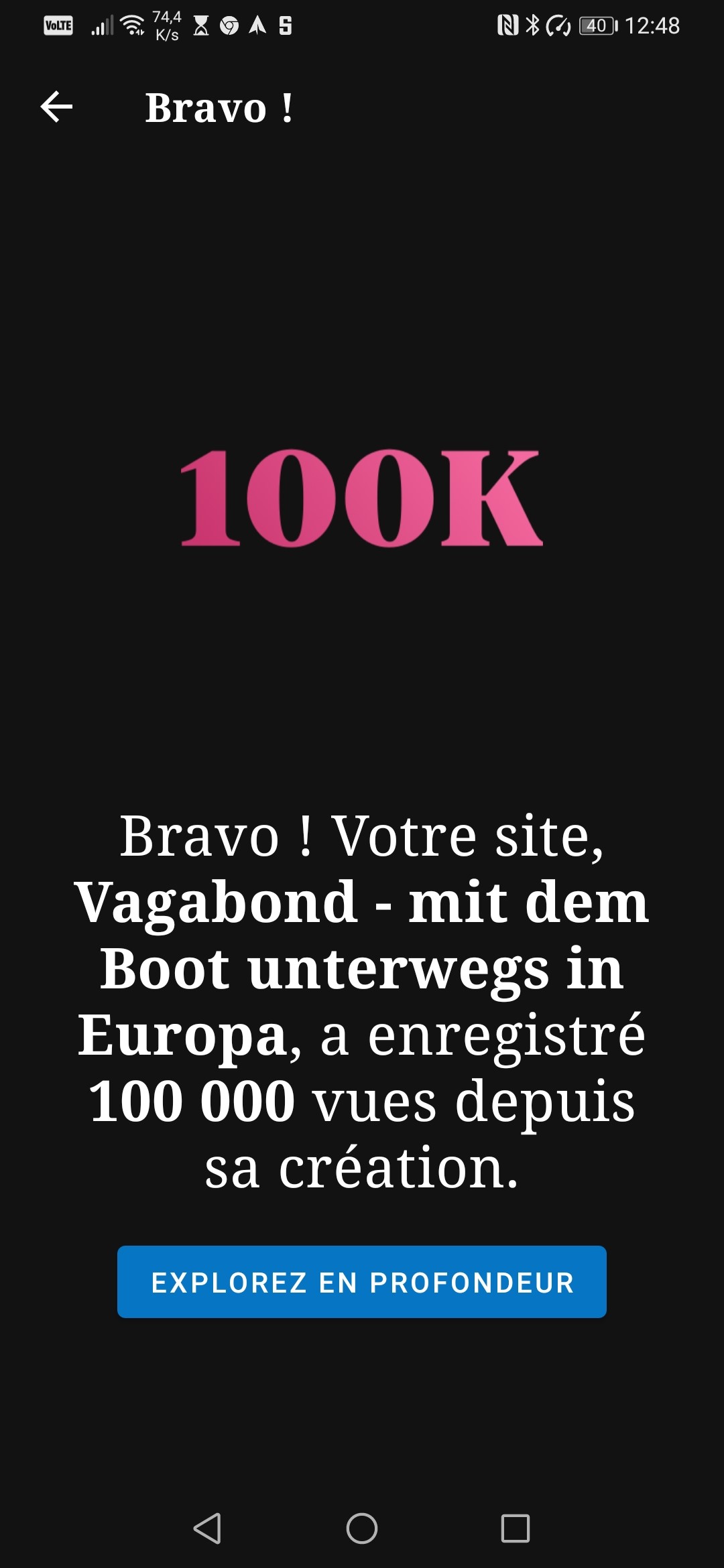 Zum Schluss noch eine erfreuliche(re) Nachricht. Seit wir unsere Webseite betreiben haben wir über 100 000 Zugriffe gezählt,…. wenn das keine Einladung zum Weitermachen ist?