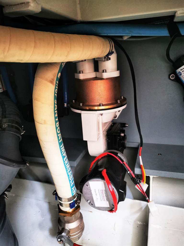 Recht schnell hatten wir die Lippenventile überprüft. Um sicher zu sein, dass der Ursprung der Panne die Membrane ist, muss man die Pumpe ausbauen und zerlegen. Aus Angst, nicht mehr in der Lage zu sein, vor Ort, die Pumpe wieder zusammenbauen zu können, haben wir uns entschlossen „auf Nummer sicher“ zu gehen. Wir bestellten somit eine neue Pumpe direkt beim Hersteller, die wir am Steg in Charleville-Mézières eingebaut haben.
