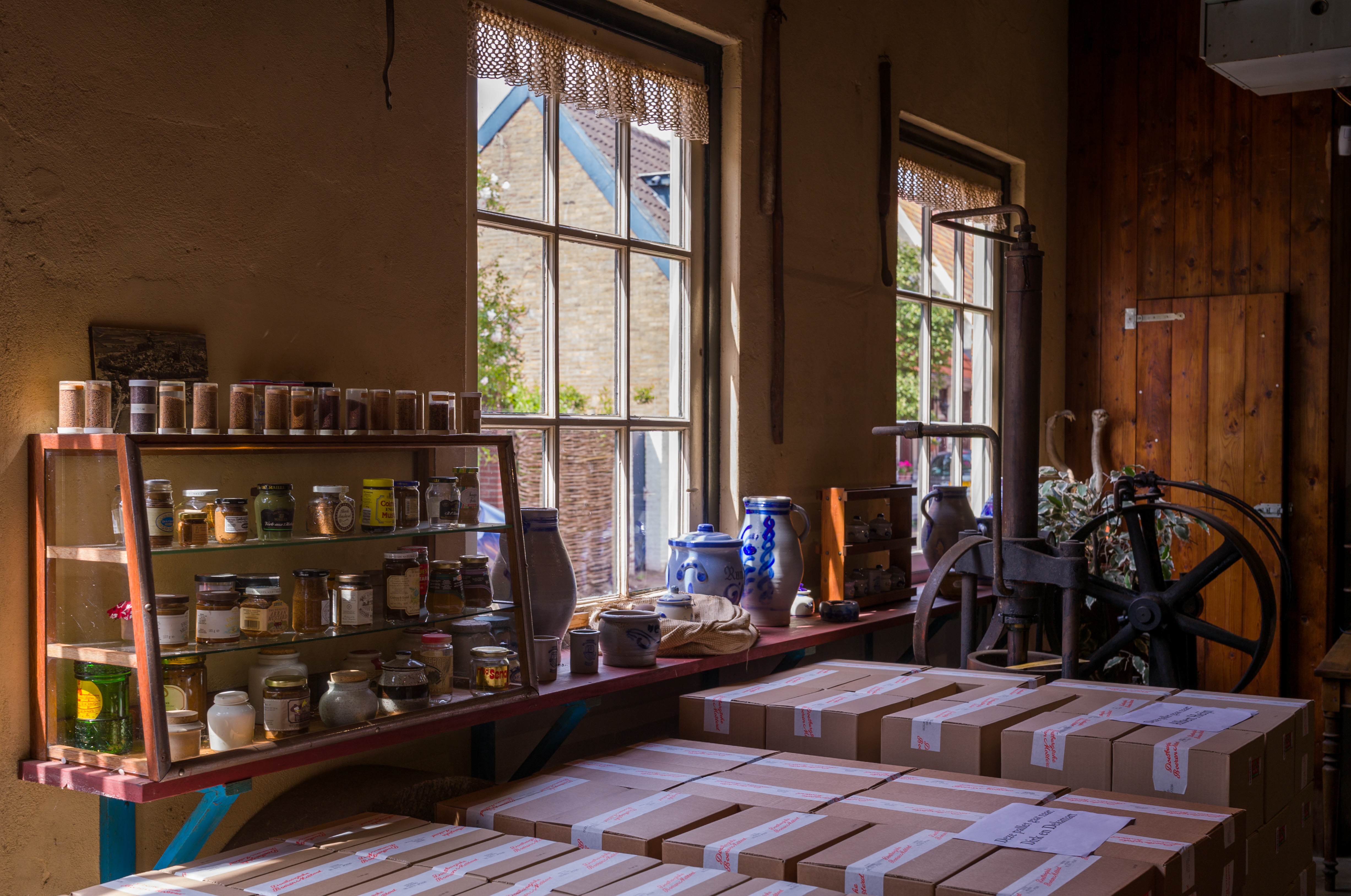 So entdecken wir auf unserem Spaziergang das „Senfmuseum“. Wir stossen vorwitzig die Tür auf und ein freundliches „Goedemiddag“ überzeugt uns, einzutreten. Wir lernen einiges über die Senfherstellung im allgemeinen und den Doesburger Senf im besonderen. Zu unserer Überraschung erfahren wir, dass es nicht nur ein Museum ist, sondern, dass hier weiterhin noch Senf und Essig hergestellt und vertrieben werden.
