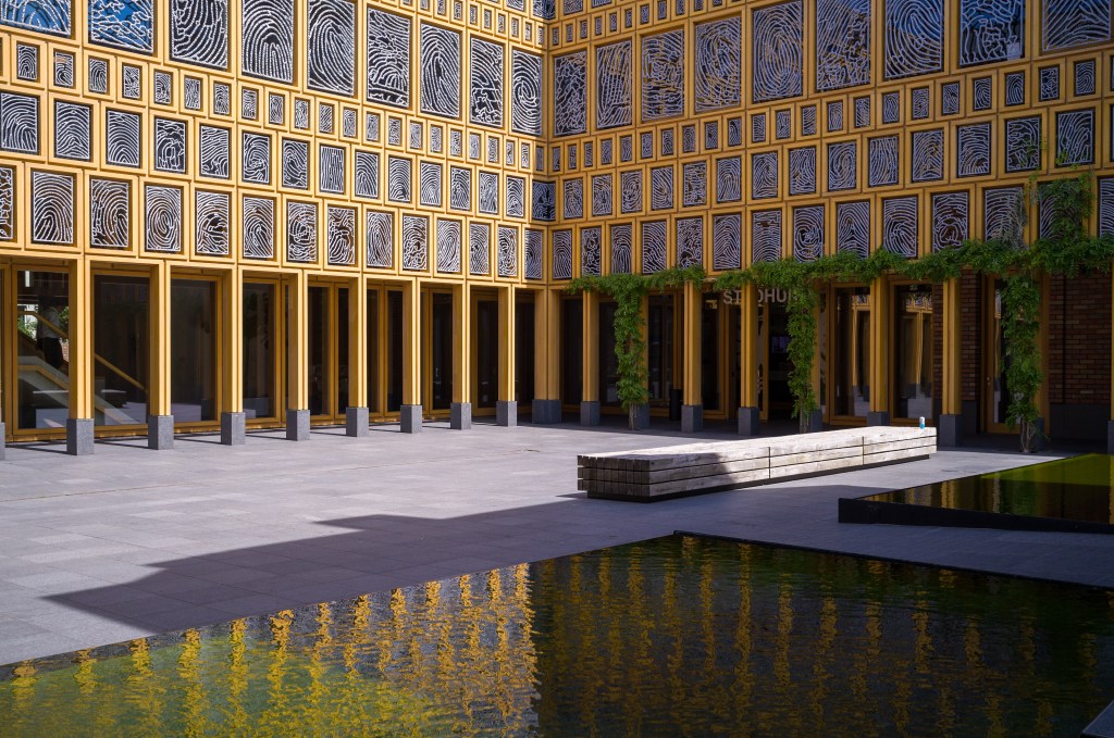 2500 in Aluminium gegossene Fingerabdrücke der Bürger der Stadt zieren die Fassade.
