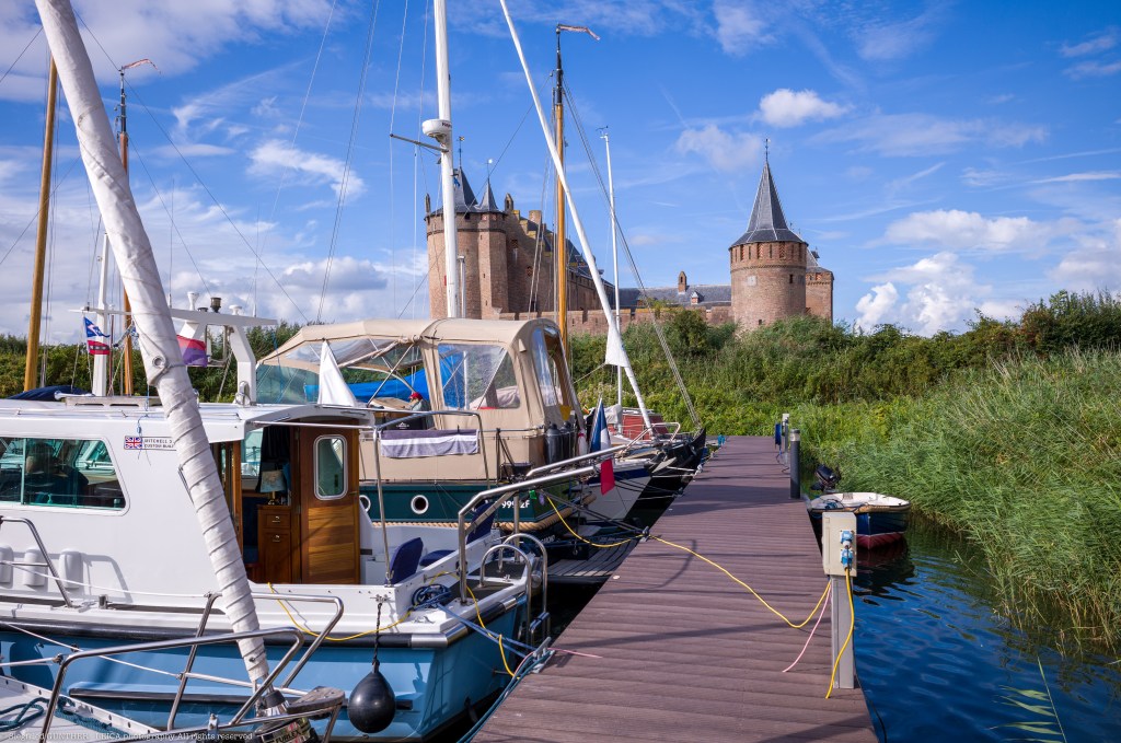 - Vor Muiden läuft eine Segelregatta mit historischen Segelschiffen. Dies erschwert das Einhalten einer geraden Linie