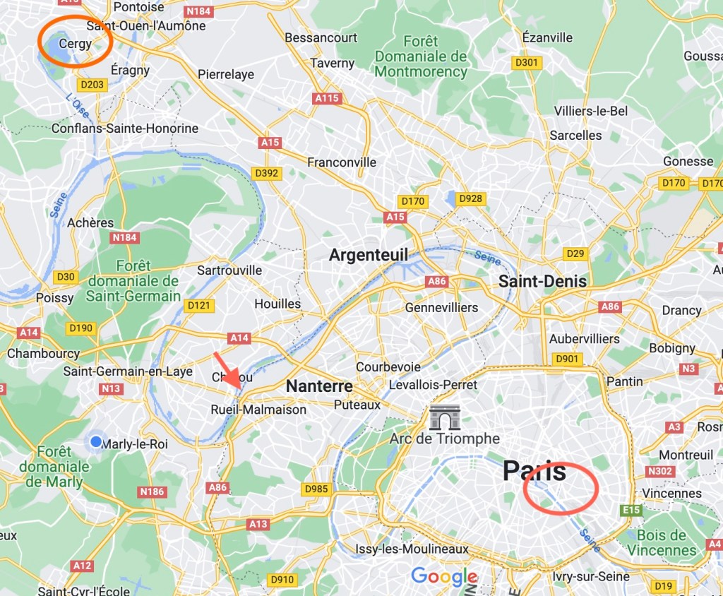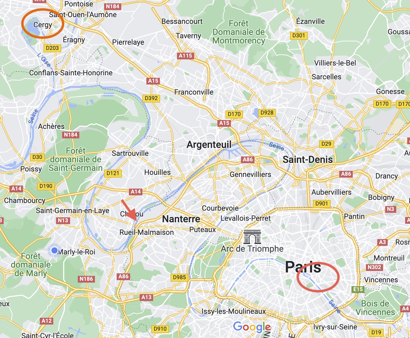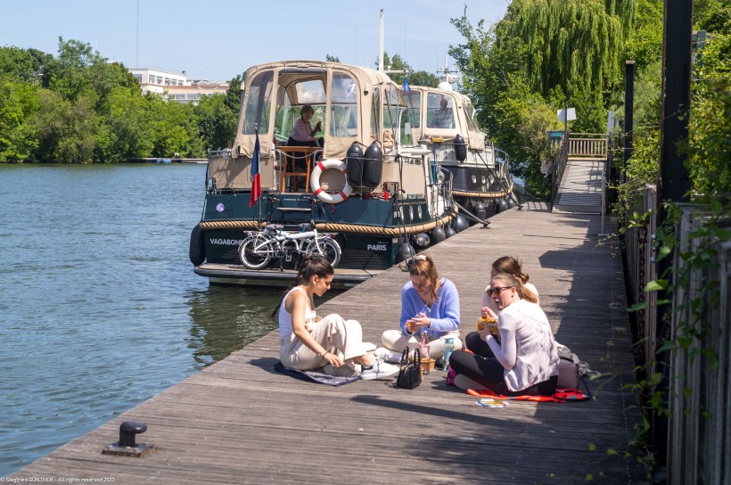 Auf etwa halber Strecke liegt die beliebte „Halte fluviale de Rueil-Malmaison„. Flussabwärts liegt sie 5km vor der Schleuse von Bougival, im Seine-Arm „Bras de Marly“. Am rechten Ufer, gegenüber der Anlegestelle liegt die Isle des impressionnistes. Sie hat einige bekannte Maler inspiriert, wie Monet ou Renoir.
