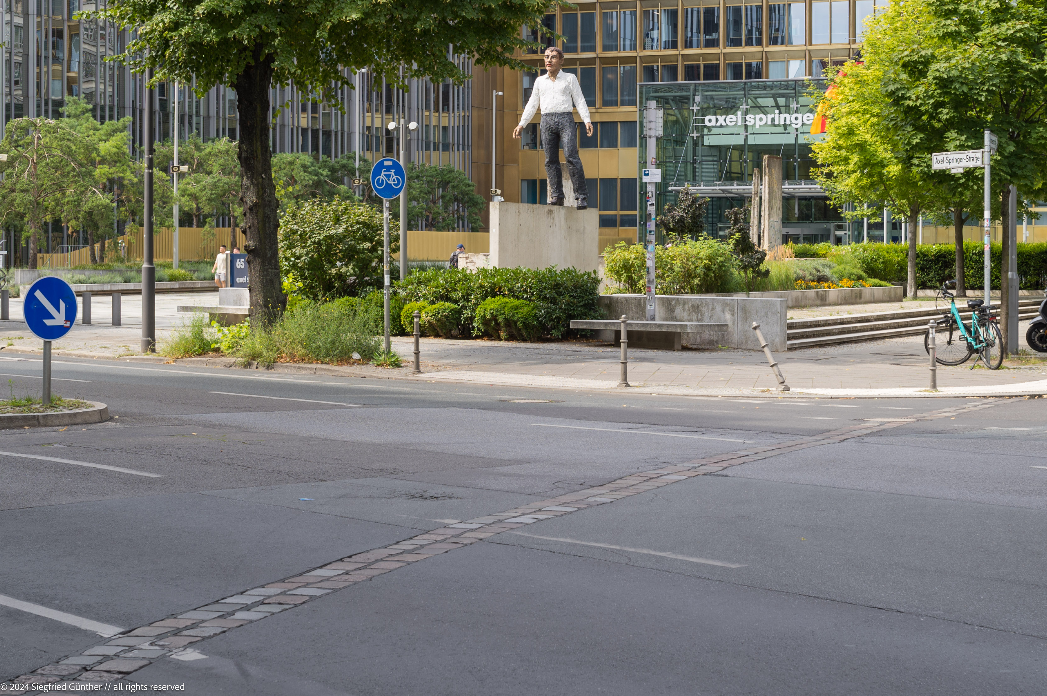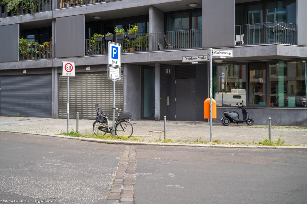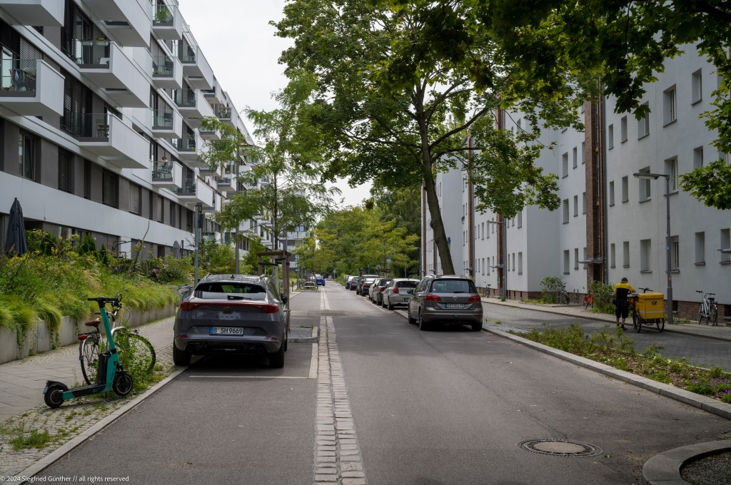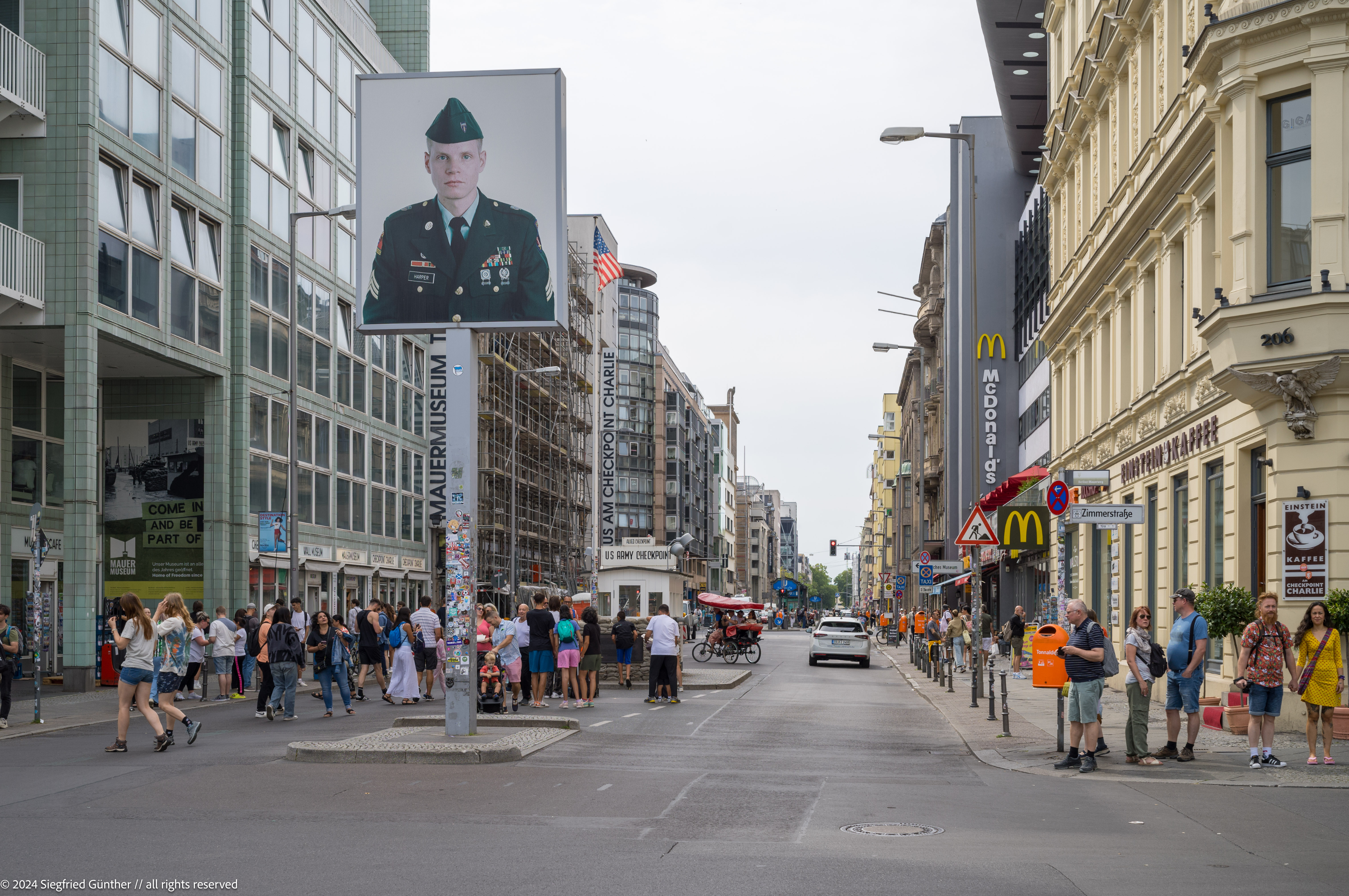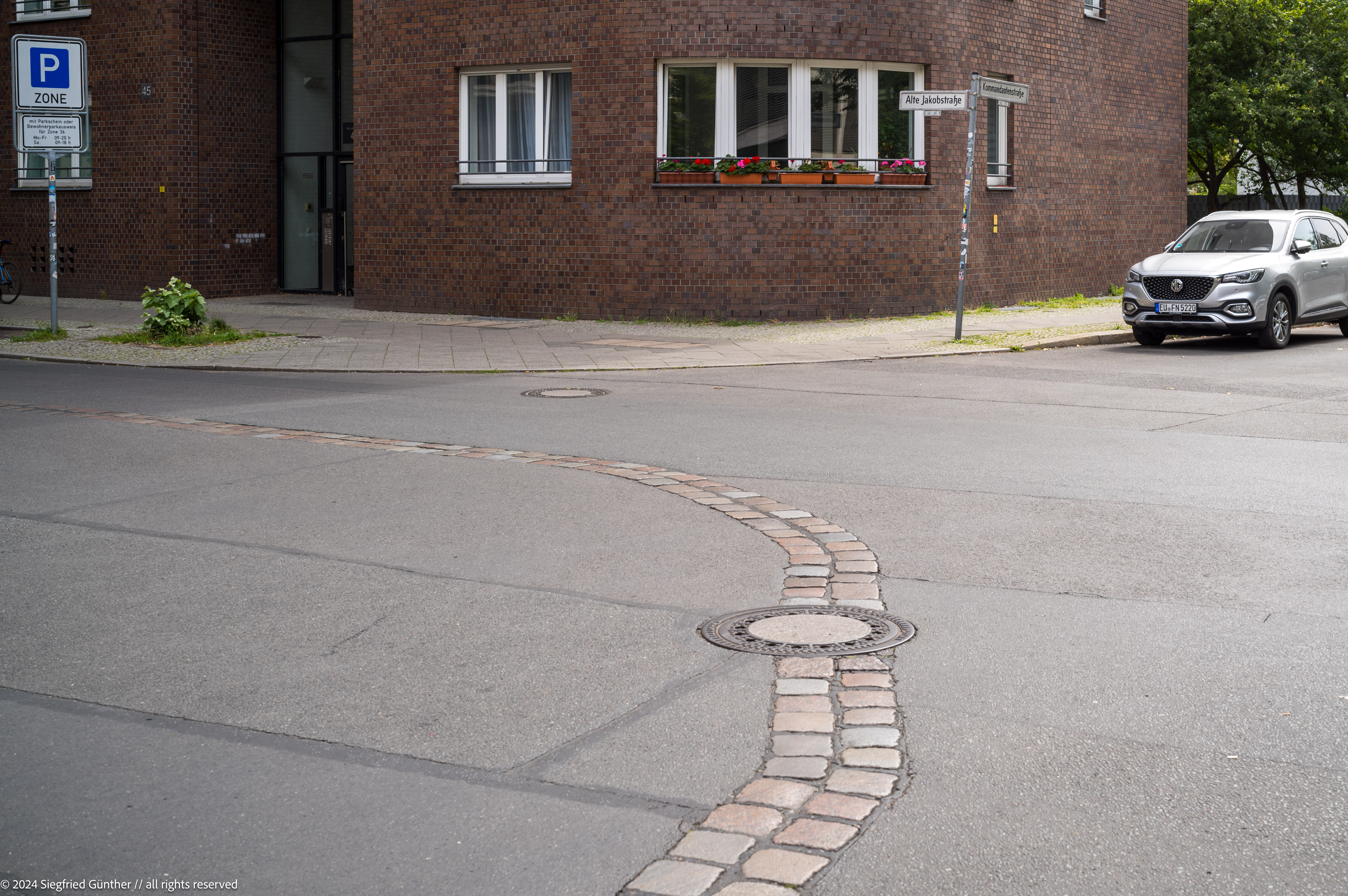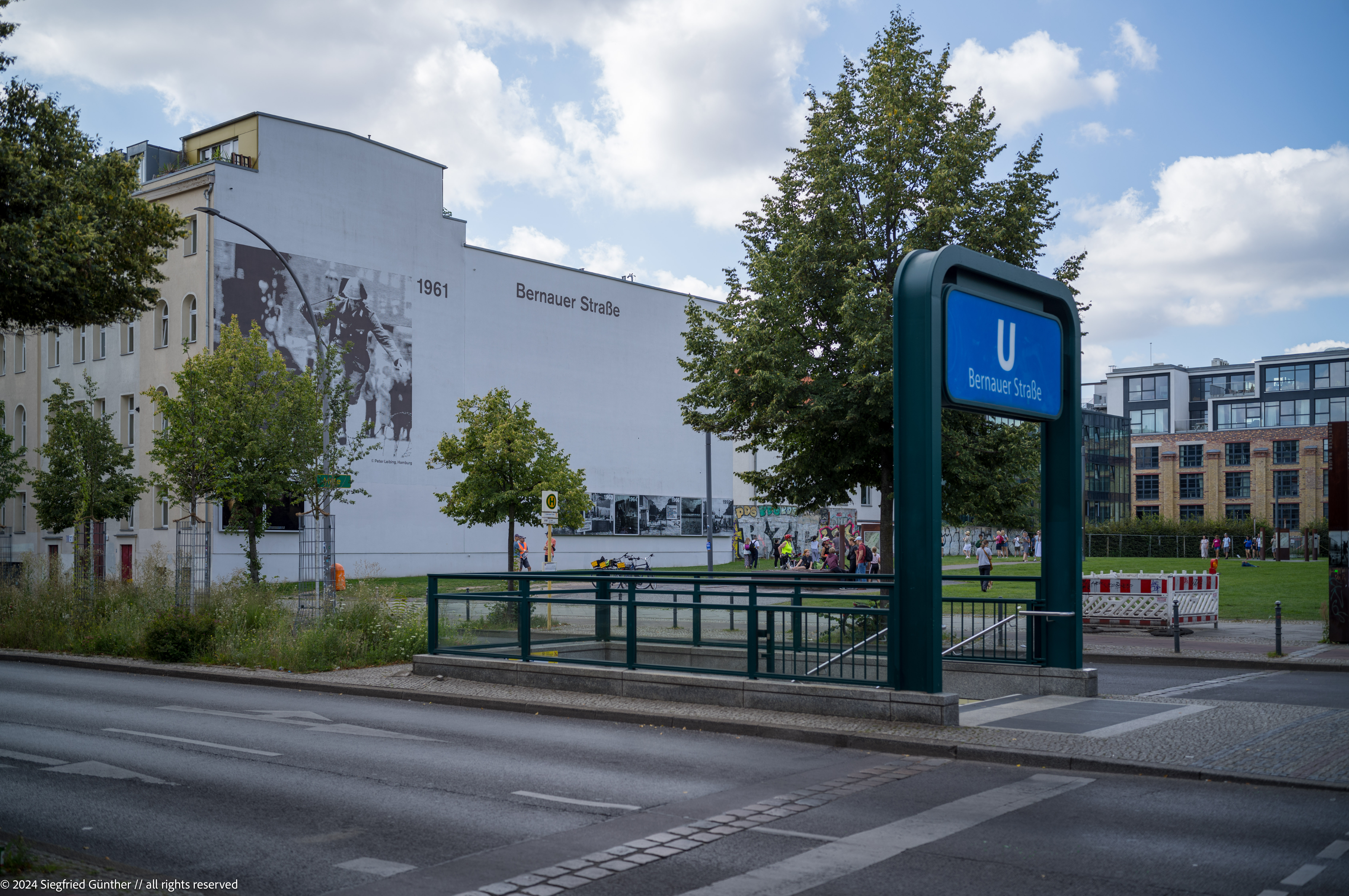 - Wo war Ost-Berlin, Wo war West-Berlin? Diese Frage begleitet uns auf dem ganzen Weg. Sieht man mal von der geogafischen Orientierung und den markanten Punkten der Stadt ab, hilft ein Blick auf die Wohnblöcke links und rechts der Strasse. Dort wo früher die Mauer und der Todesstreifen waren, stehen heute moderne Wohnanlagen. Gegenüber sieht man die typischen Bauten der Nachkriegszeiten, die man auch aus anderen Städten im Westen kennt.