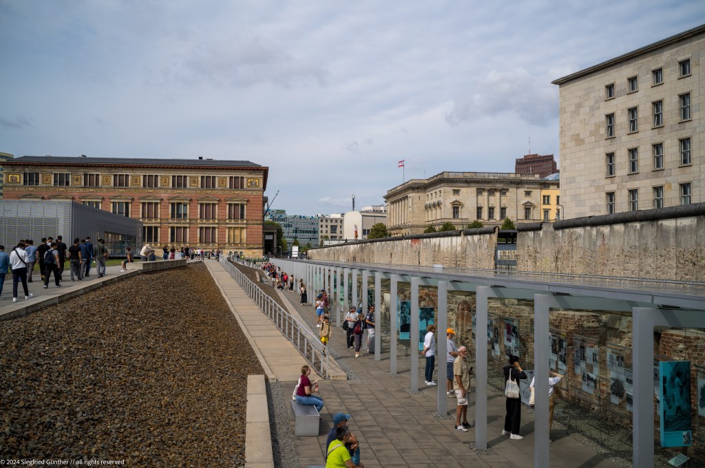 Auf dem gesamten Weg gibt es Informationstafeln, die an die dramatischen Ereignisse erinnern. In der Niederkirchenstrasse führt der Weg vorbei an der permanenten Ausstellung „Topographie des Terrors, für die wir uns etwas Zeit nehmen.