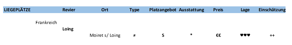 Bilder und Bewertung sind vom Autor erstellt. Es handelt sich hier um subjektive Einschätzungen. Ausserdem kann sich der Zustand des Liegeplatzes mit der Zeit ändern.