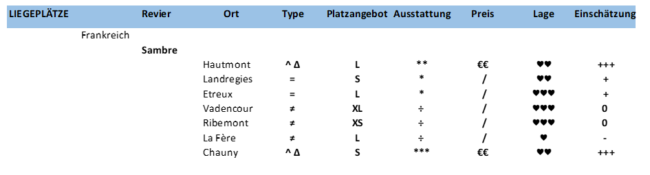 Danke fürs Feetback. Ja, das ganze ist eine ständige Baustelle. Schau mal auf der Seite Liegeplätze. Da findest Du unten einen Anfang der Antwort. https://vagabond4you.com/liegeplaetze/