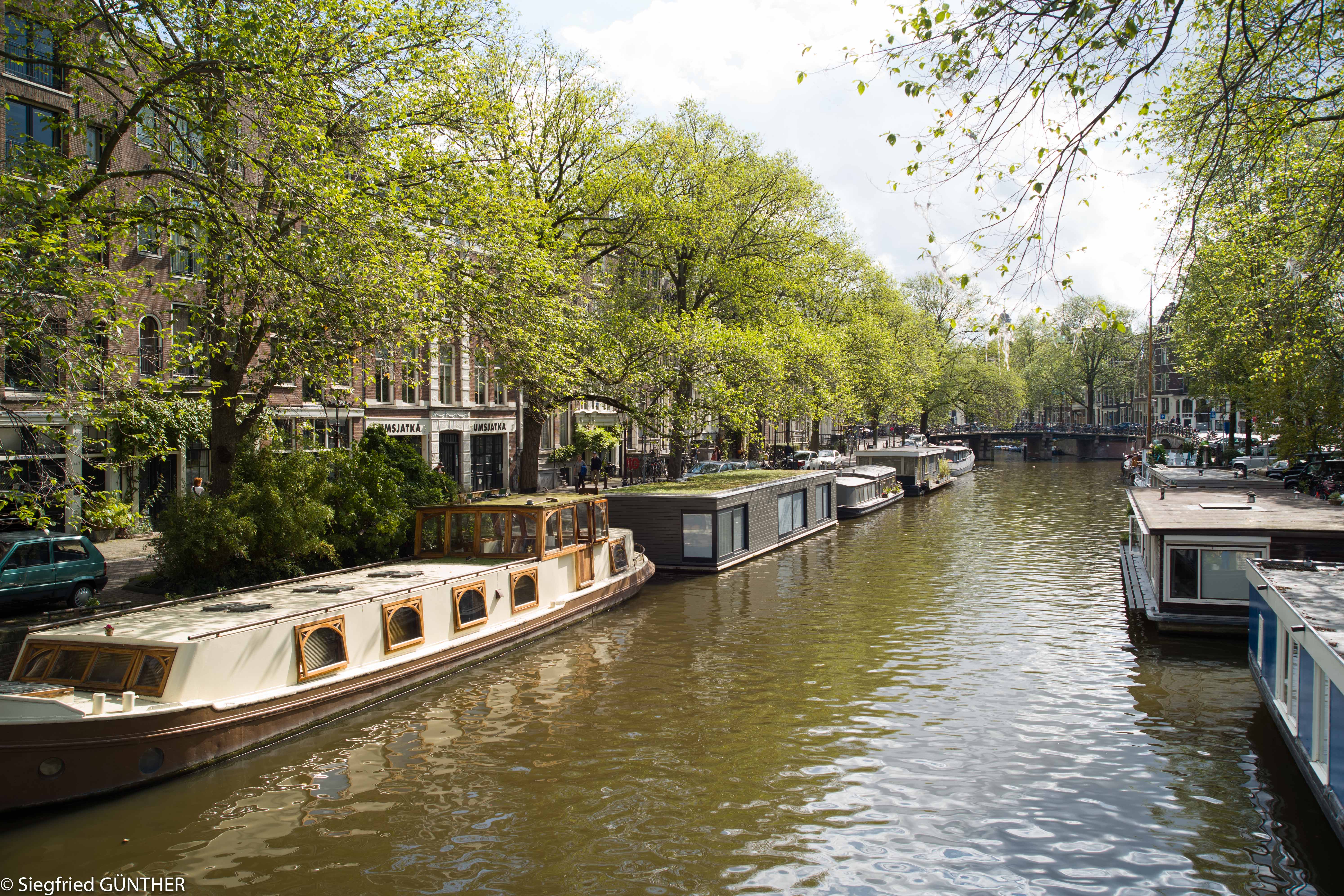 Wir verlassen Amsterdam am Morgen gegen 9h00 in Richtung Osten. Bis zur Grachteneinfahrt, die zur Amstel führt, begleitet uns noch TIGER 1, Freunde aus Australien. Auch sie verlassen heute Amsterdam und brechen in Richtung Gouda auf. Wir bleiben auf der IJ und fahren weiter östlich in Richtung Schleuse.