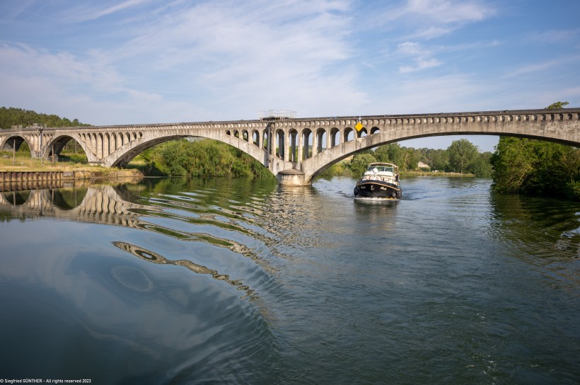 Die Fahrt bis Sens erweist sich zunächst als sehr angenehm. Es gibt (noch) genügend Wasser. Man sollte sich wenn möglich an den in den Führern angegebenen Fahrrinnen orientieren. Der Fluss ist teilweise schon recht versandet, es gibt Untiefen und manchmal auch überschwemmte Mauern.