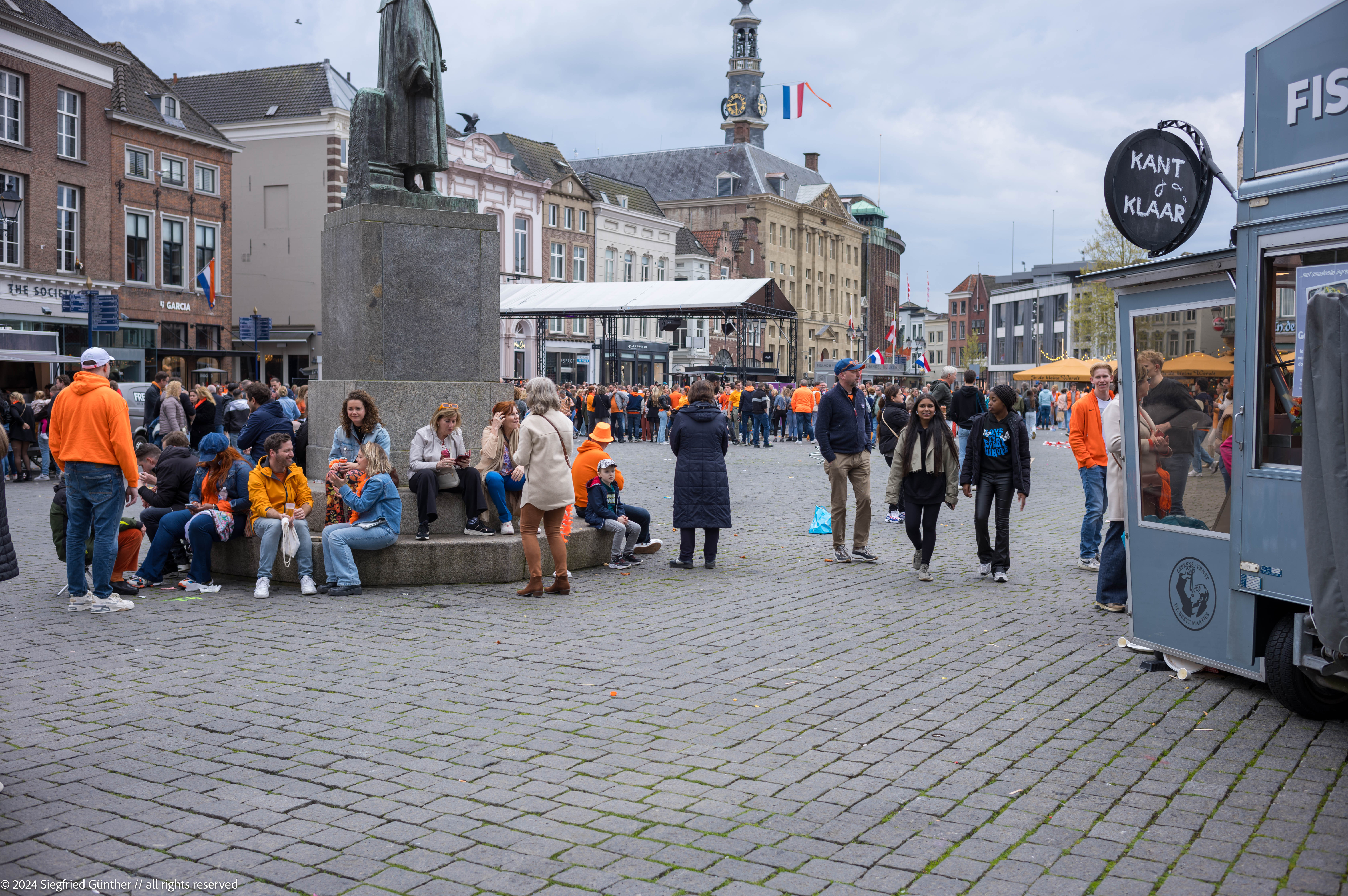 Dieses Mal fällt unser Besuch auf den „Koniginendag“ (oh Entschuldigung, man muss ja jetzt „Konigsdag“ sagen.) Scheinbar haben sich die Niederländer, mit denen wir ins Gespräch kommen, immer noch nicht an die Veränderung im Königshaus gewöhnt. Es ist Samstag. Die Geschäfte sind geschlossen. Der Tag gilt dem Feiern. Überall begegnen uns „orangefarbene“ T-Sirts, Hüte, Brillen und sonstig verkleidete Gestalten. Musik ist an jeder Strassenecke zu hören.