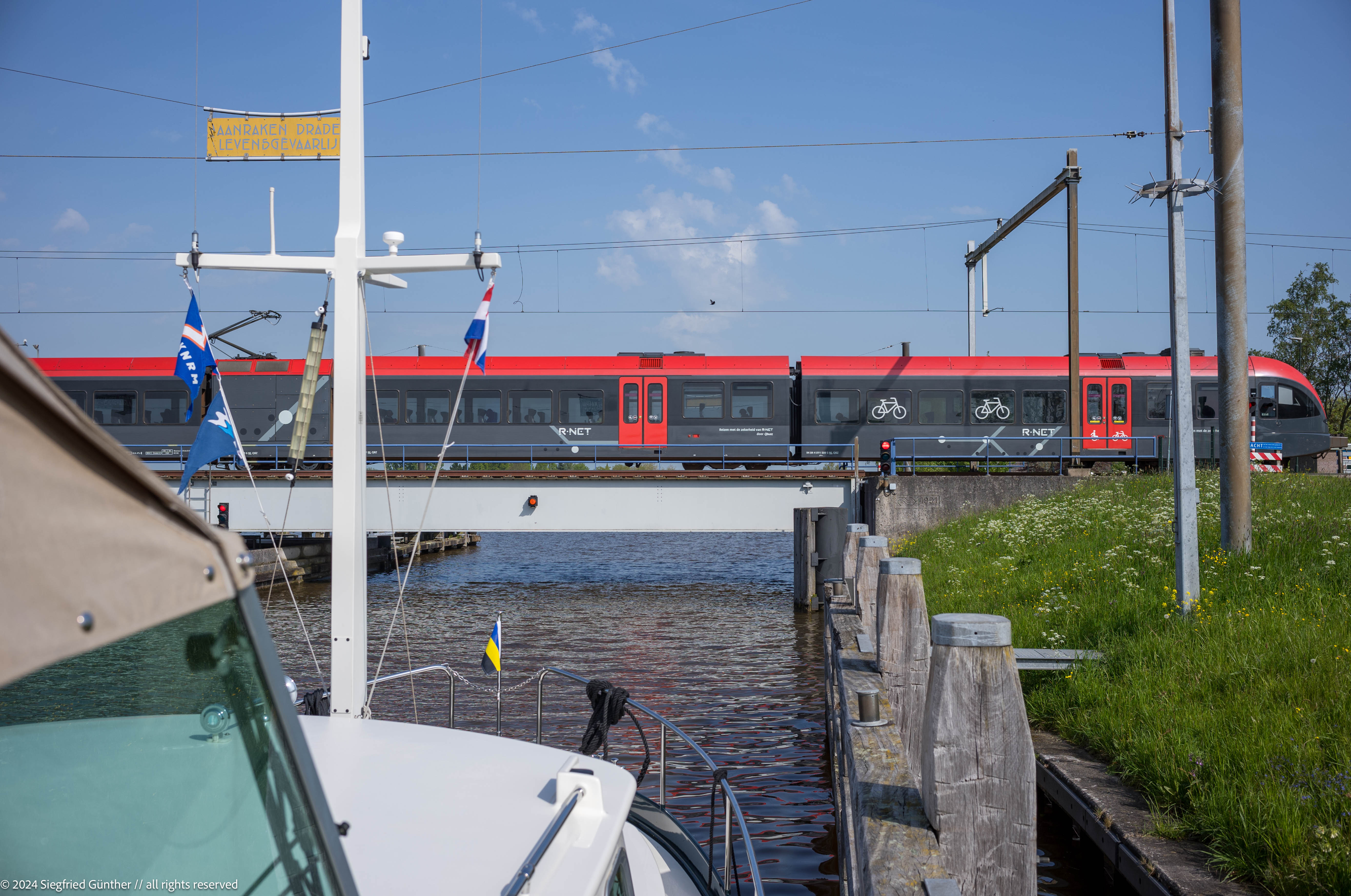 Wir haben Glück und kommen kurz vor Öffnung der Eisenbahnbrücke dort an und haben nur 10 Minuten Wartezeit.