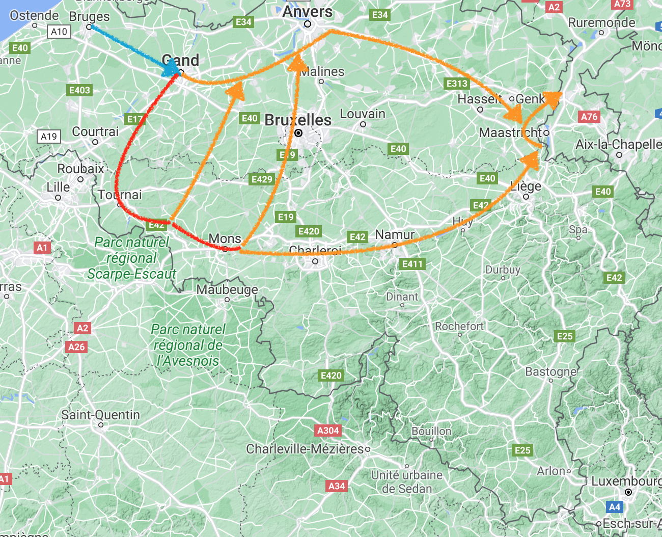 Die Schelde ist ein Gezeitenfluß. Die Tiede bei Antwerpen beträgt etwa 6m. Von Gent nach Antwerpen sind es rund 80km. Auf den ersten 30 km gibt es keine Anlegemöglichkeiten. Hier ist die Schelde noch recht schmal und sehr kurvenreich. Die Innenkurven sind meist versandet und man muß mit Berufsverkehr rechnen, so steht es in den Navigationsführern.
