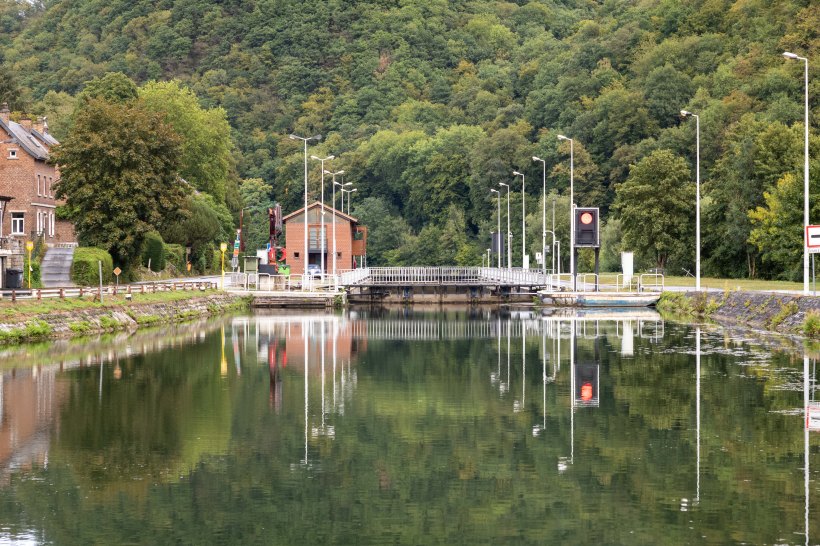 Von Waulsaort aus brechen wir nach Givet in Frankreich auf. Wir nähern uns der Grenzschleuse „4 Chéminées“ und kündigen uns über UKW Kanal 10 an.