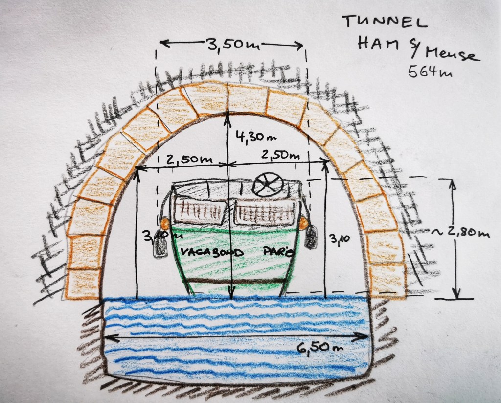 Ein zweites Nadelöhr, anderer Form, erwartet den nach Frankreich reisenden Bootsfahrer kurz nach der Grenze. Der Tunnel von Ham. Hier geht es um die Vorbereitung des Bootes für die Tunneldurchfahrt.