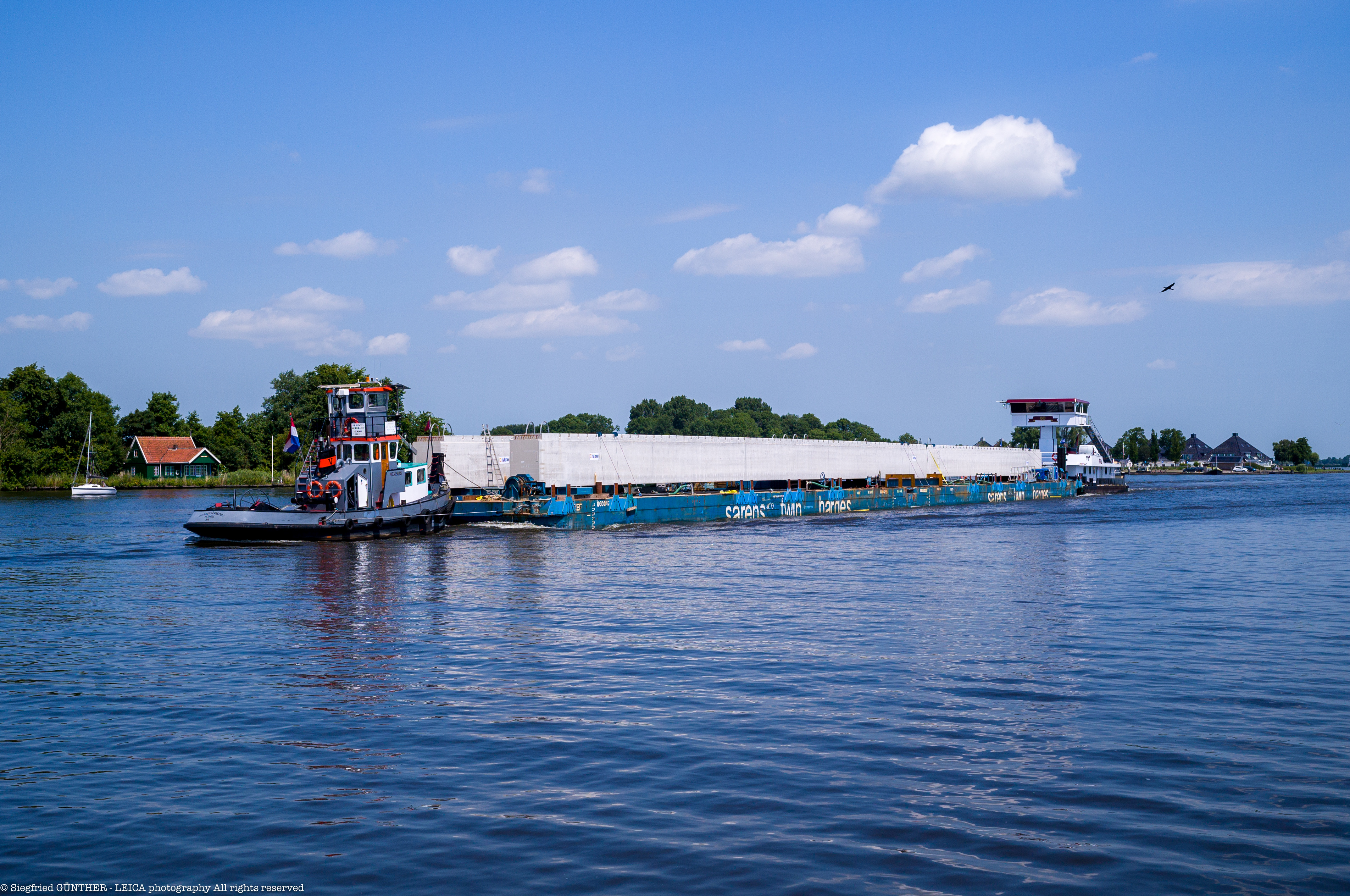 Es geht weiter nach Grou (3). Wir wählen den Weg, der an Bolsward vorbeiführt. 2017 hatten wir die Stadt mit dem Bus von Stavoren kommend besucht. Diesmal fahren wir südlich an ihr vorbei. Der Weg führt uns durch typische friesische Kanal- und Graslandschaften, bevor wir Sneek zur Mittagszeit erreichen. Die Stadt durchqueren wir zügig. Über den Prinses Margeriet Kanal geht es weiter. Wie zu erwarten, treffen wir hier auf Berufsverkehr, der allerdings nicht sehr drückend ist. Der „Kanal“ ist breit, es gibt keine Strömung und das Wetter zeigt sich von seiner besten Seite.