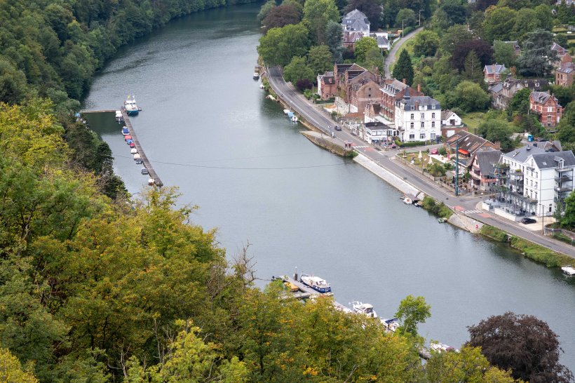 Wenn man dann einmal angekommen ist, versteht man, dass es noch eine zweite Möglichkeit gibt, um auf das linke Ufer zu gelangen. Man muss etwa 1 km flussaufwärts bis zur Staustufe gehen, dort kann man die Maas dann überqueren. Von dort aus führt auch eine Strasse auf dem rechten Ufer nach Hastière, wo es Einkaufsmöglichkeiten gibt.