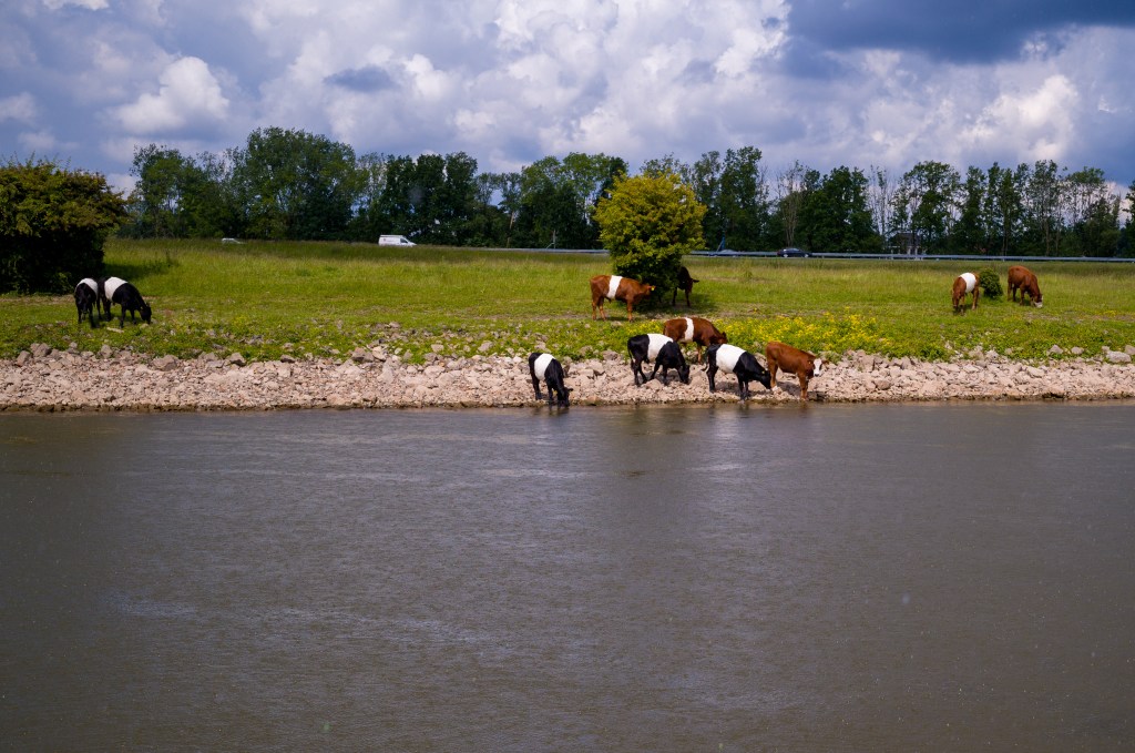 Sobald wir auf der Amer, später Bergsche Maas sind, spüren wir jetzt das auflaufende Wasser. Wir werden „geschoben„. Da der Höchststand bei Keizerveer erst 3 Stunden nach Dordrecht (um 13:48h) erreicht wird, trägt uns die Flutwelle fast bis nach Heusden, wo wir um 14h30 festmachen.