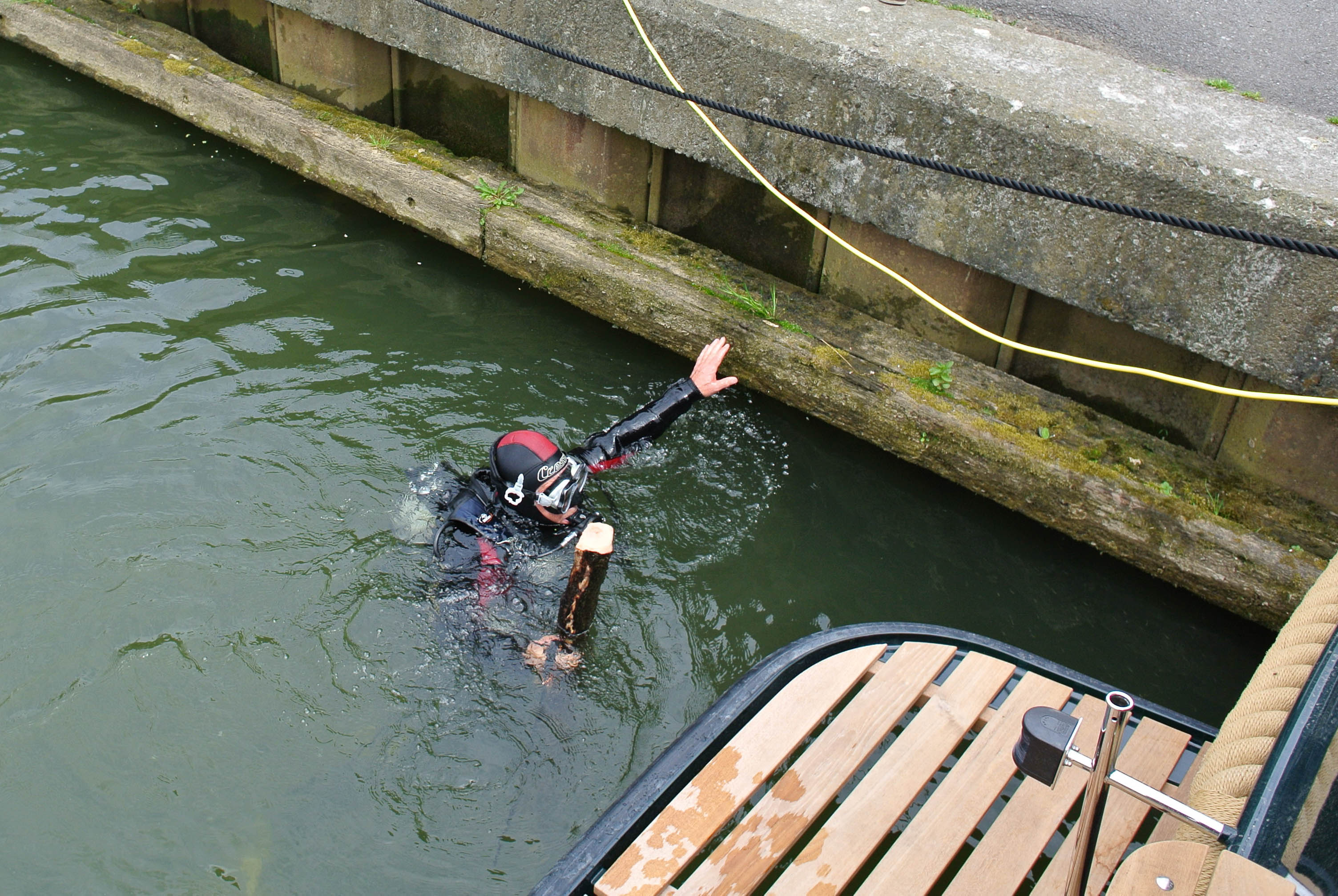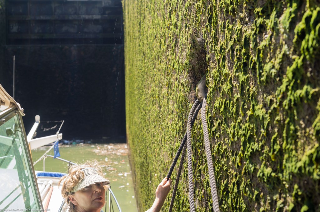Es gibt kaum Festmacher, in den Kammern sind es oftmals Haken in der Schleusenwand. Man kann sich leicht daran „verfangen“.