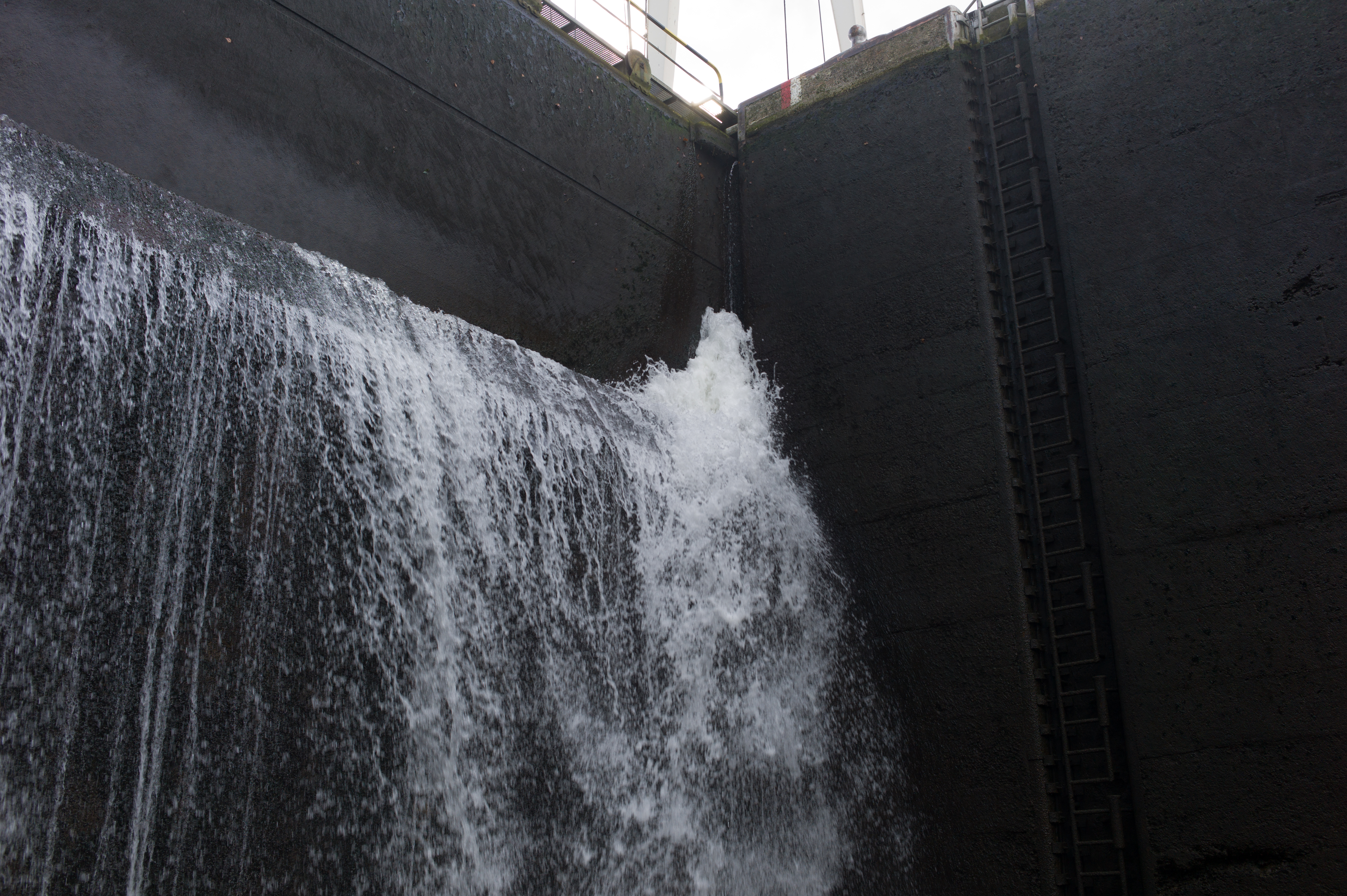 Um Schwierigkeiten in der Kammer zu vermeiden, sollte man sich immer an der zentral gelegenen Mauer anlegen oder festmachen, falls dies mรถglich ist! Das einfliessende Wasser strรถmt zunรคchst unter dem Boot zur gegenรผberliegenden Mauer, wird dort zurรผckgespรผlt und drรผckt anschliessend das Schiff gegen die zentral gelegene Wand. Wenn man versehentlich auf der falschen Seite liegt, wird man von der Wand weggedrรผckt!