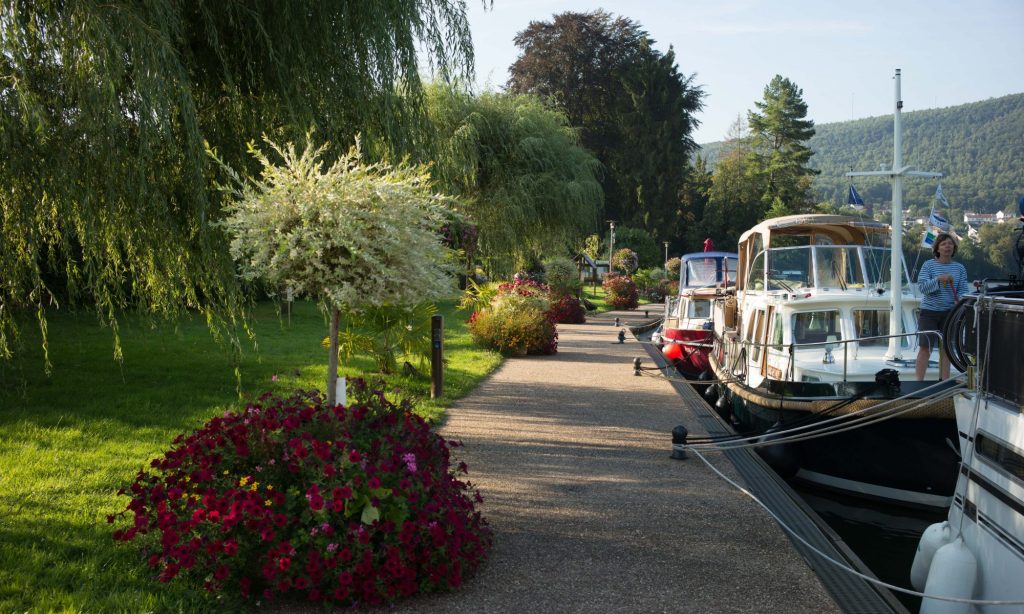 Vor der 1. Schleuse im Unterwasser des Kanals befindet sich ein schรถn gelegener Anleger mit Wasser, Strom und Sanitรคranlagen fรผr 11โฌ pro Nacht (1โฌ pro Meter).