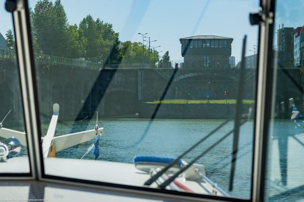 Vor uns, bis zum Hafen Arsenal liegen 8 Schleusen abwรคrts, zwei Drehbrรผcken und einen Tunnel. Die Schleusen sind jeweils in 2 Stufen angeordnet: 1 & 2, 3 & 4, 5 & 6, 7 & 8. Dadurch geht das Schleusen recht zรผgig voran. Die Schleusen werden ab 8h05 bedient. Es ist zu empfehlen, frรผh zu starten und am besten am Wochenende. Ab 9h30 wird der Kanal hรคufig von Passagierschiffen benutzt, die Vorfahrt haben.