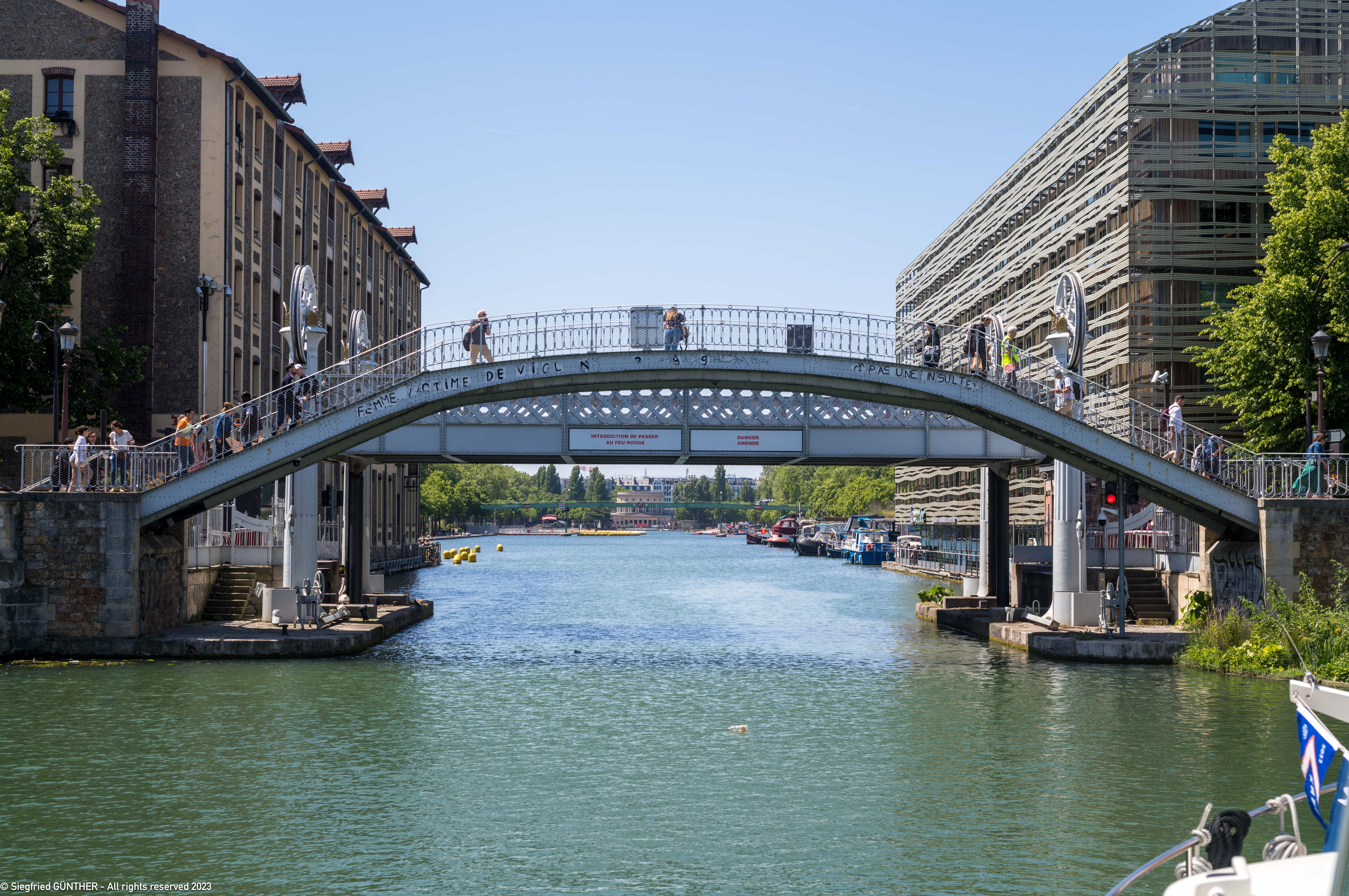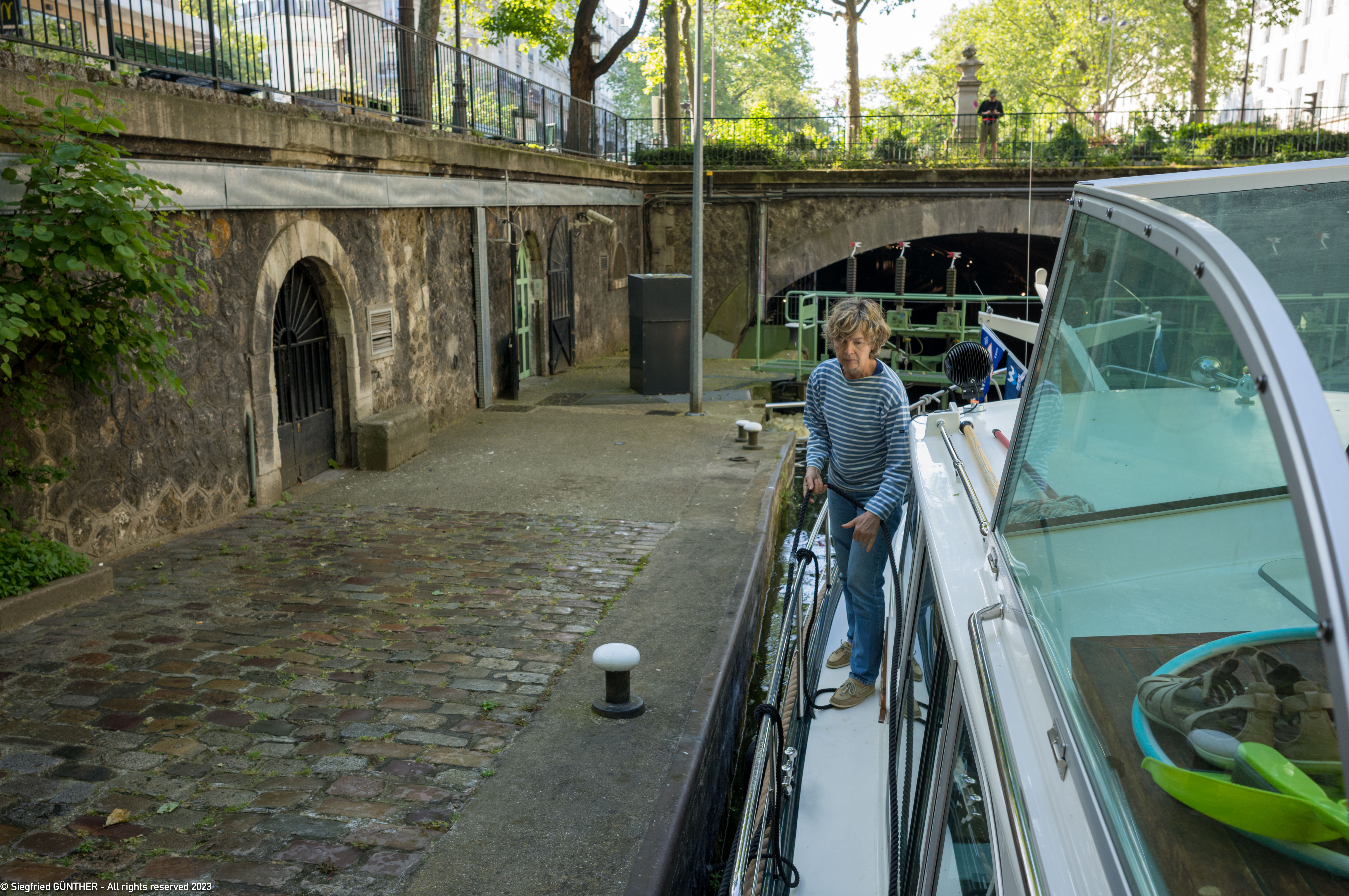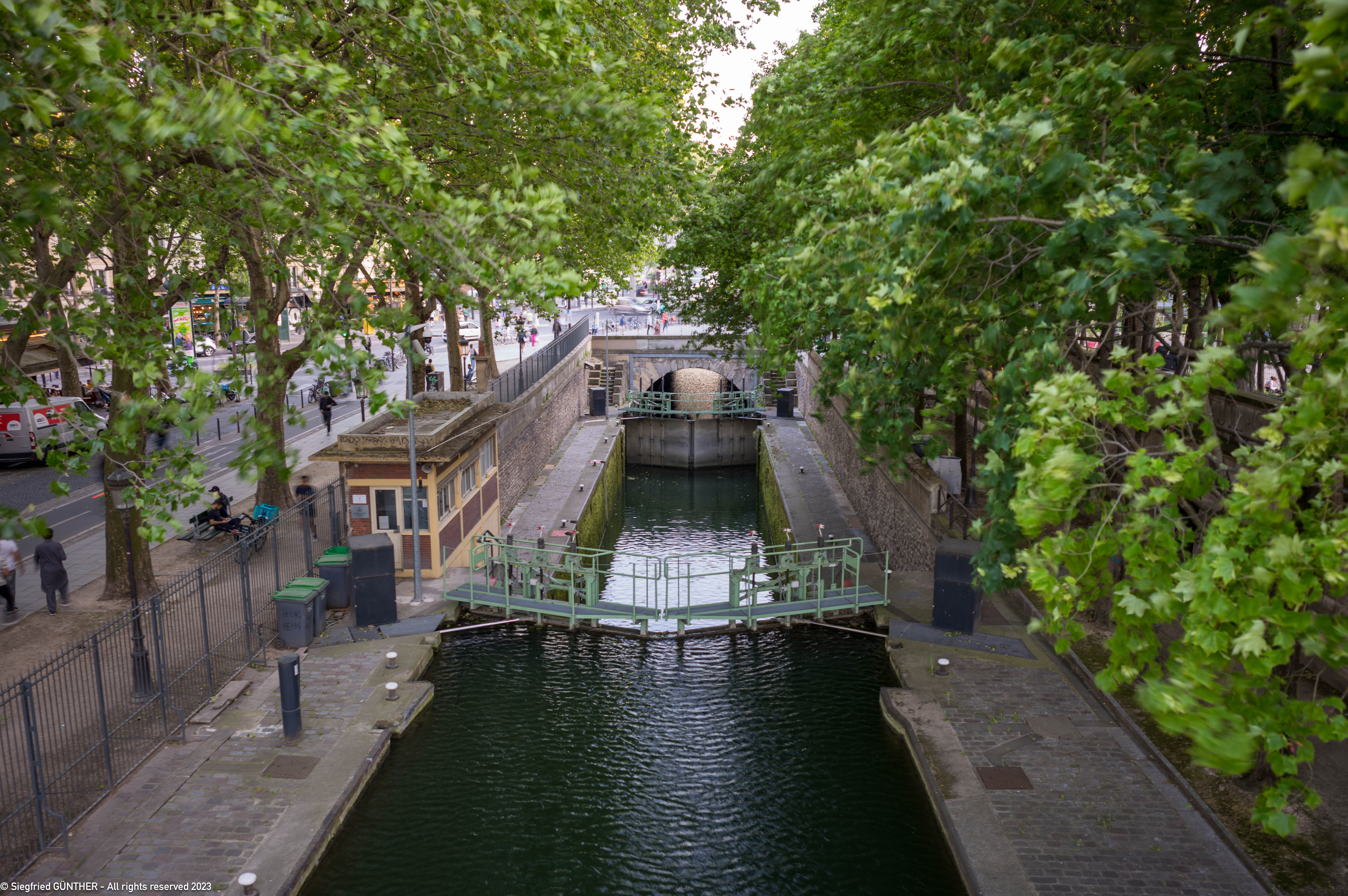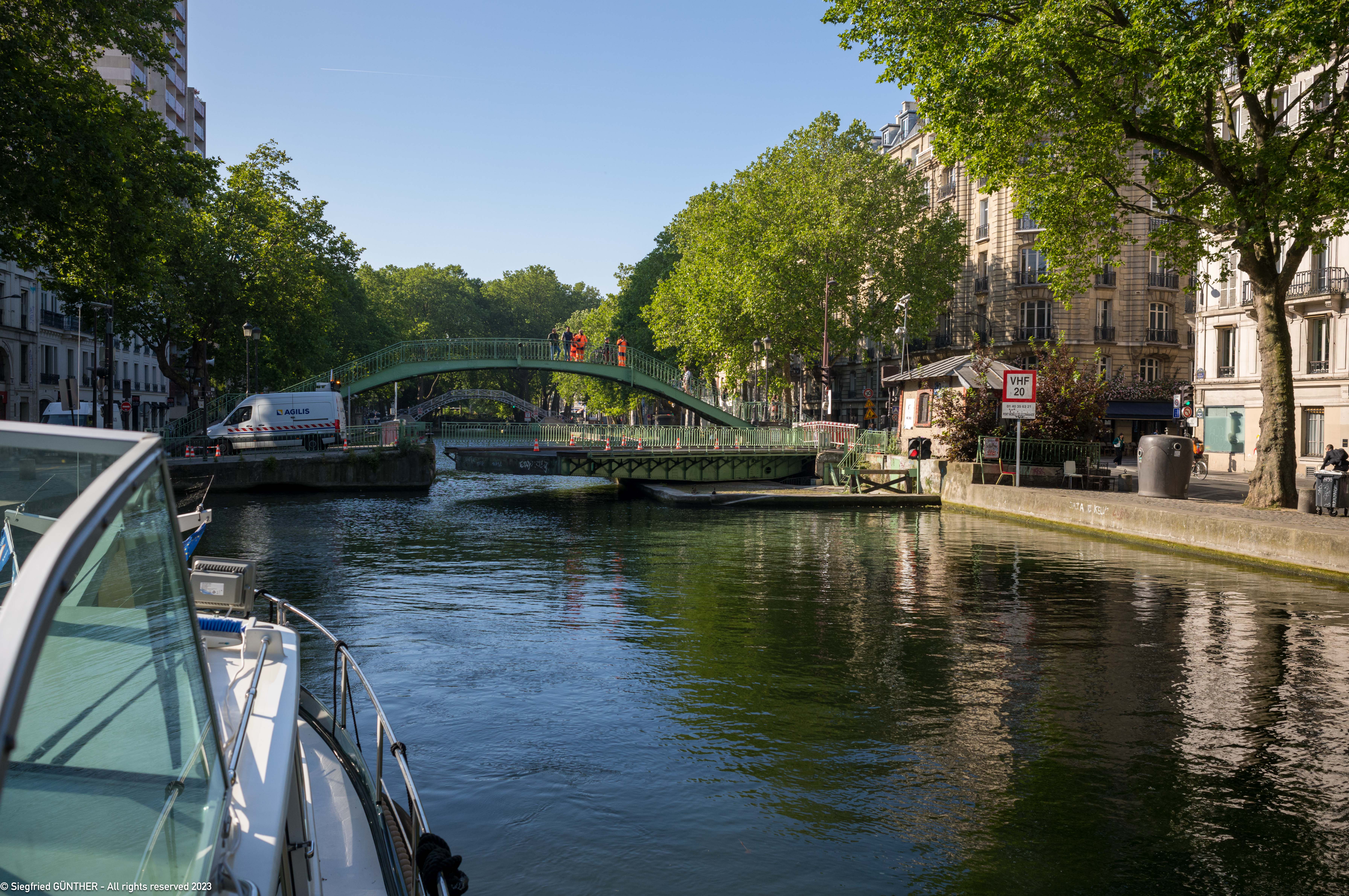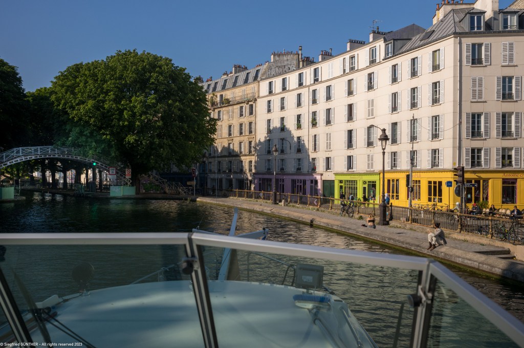 Am nรคchsten Morgen melden wir uns wieder รผber Telefon (+33 1 43 41 39 32) beim Kontrollposten des Canal St. Martin an.