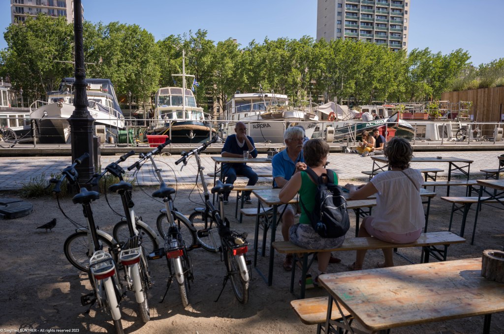 Ganz anders der Canal Saint Martin, den man an der „Villette“ erreicht. Dort haben wir am Anleger zwei Plรคtze reserviert. Von Rueil-Malmaison bis hierhin, haben wir 5 anstrengende Stunden gebraucht.