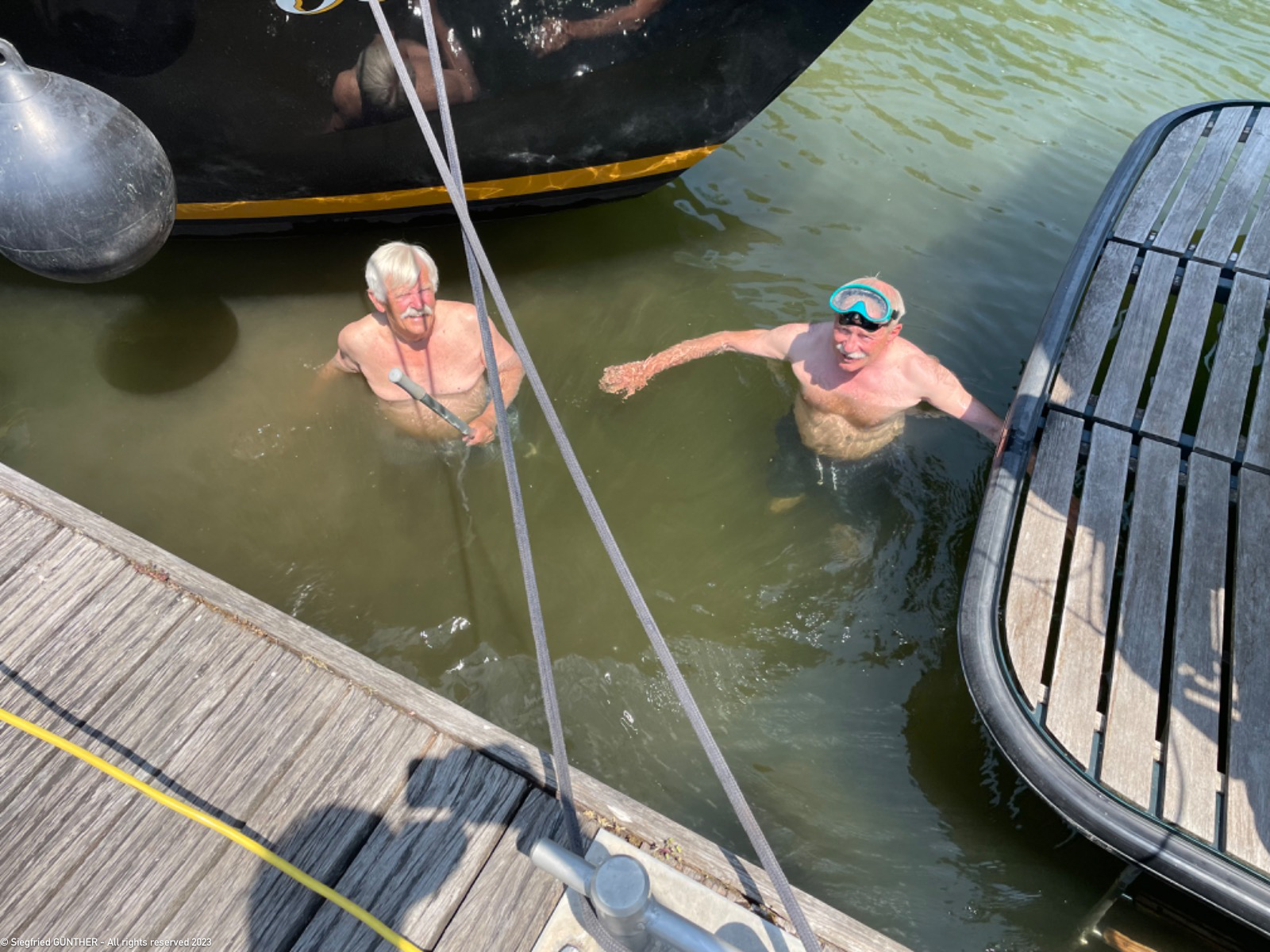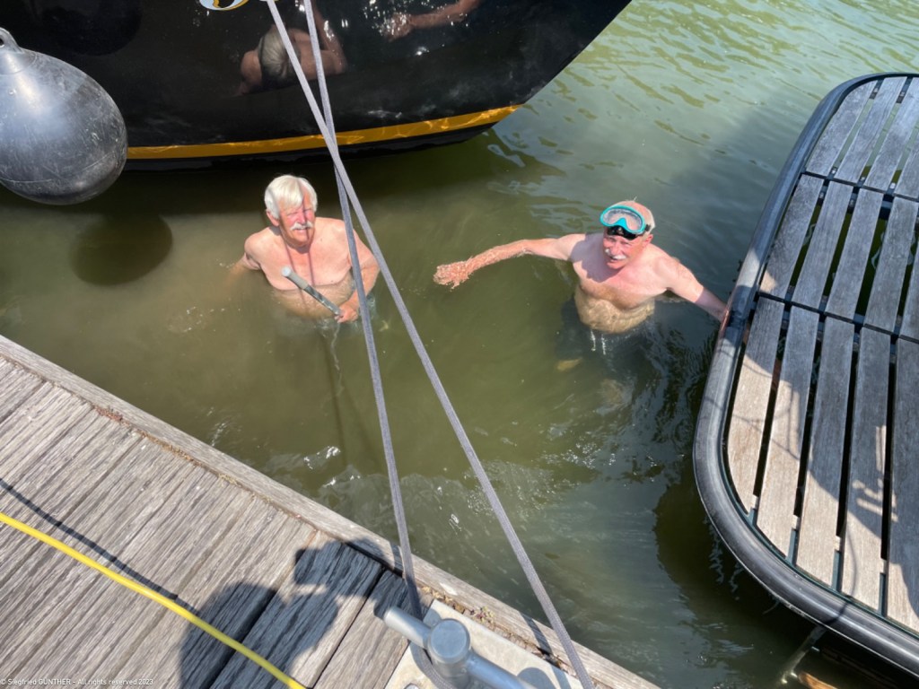 Das Anlegemanรถver erweist sich als sehr schwierig wegen der recht starken Strรถmung. Da die Stege quer zur Strรถmung liegen, werden die Boote entweder an den Steg gedrรผckt, oder davon weggetrieben. Schon vor vier Jahren, als wir hier zum ersten Mal anlegten, hatten wir รคhnliche Schwierigkeiten, welche unserem Boot die erste „Schramme“ zufรผhrten,…