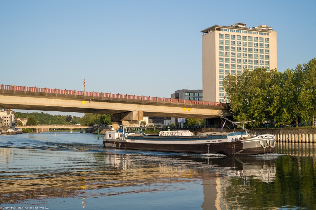 Mit der Capitainerie vereinbaren wir, dass wir am Montag 5. Juni die Schleuse zur Seine um 8h15 benutzen wollen, um nach einer Woche unsere Weiterreise anzutreten. รber VHF 9 kรผndigen wir uns an und werden sofort zusammen mit BALU geschleust. Auf der Seine ist noch nicht viel Verkehr um diese Zeit. Nach einer knappen Stunden erreichen wir die Mรผndung der Marne.