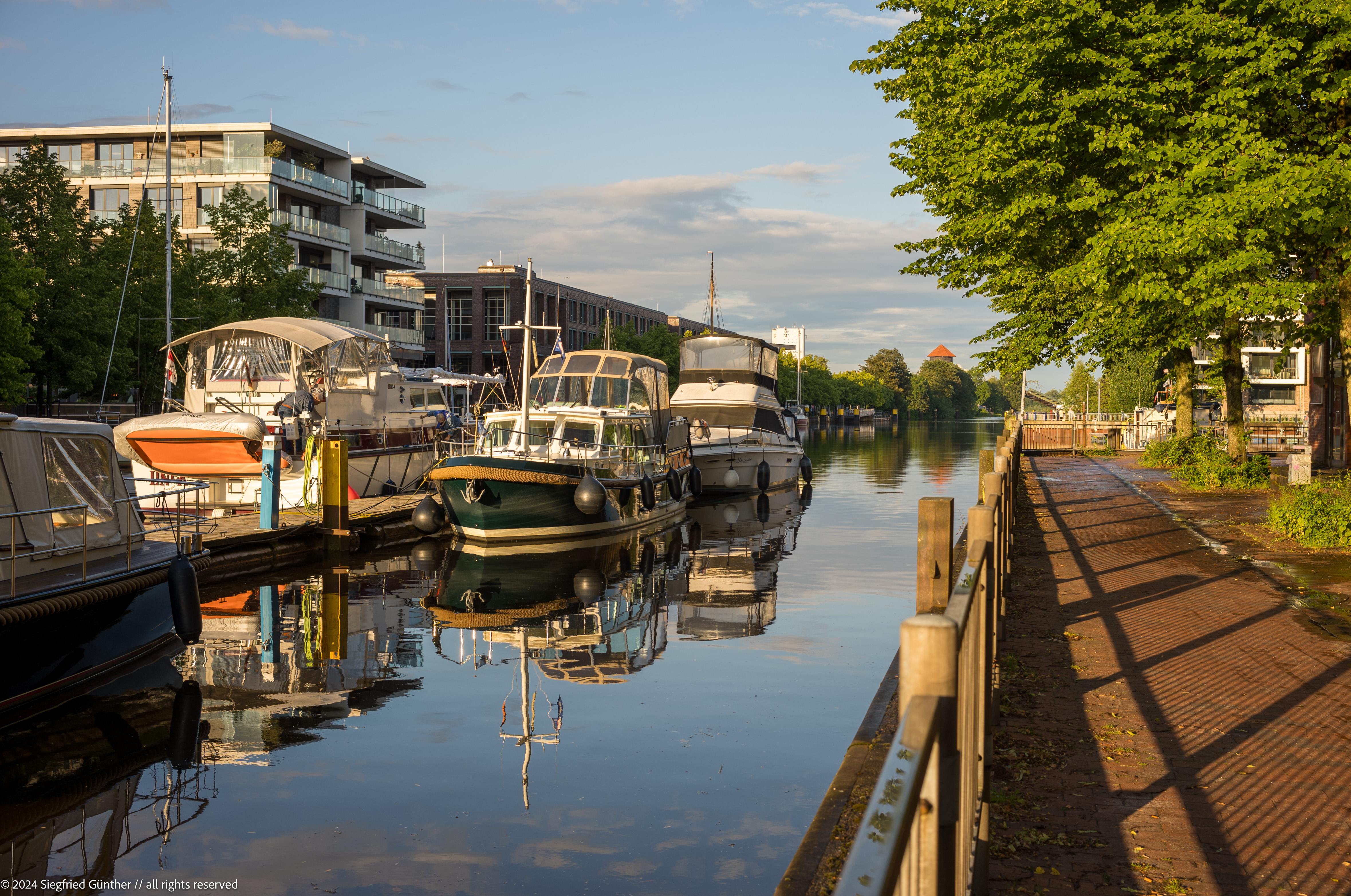 Am rechten Flussufer findet man hier Poller zum Anlegen und Stromanschlรผsse .