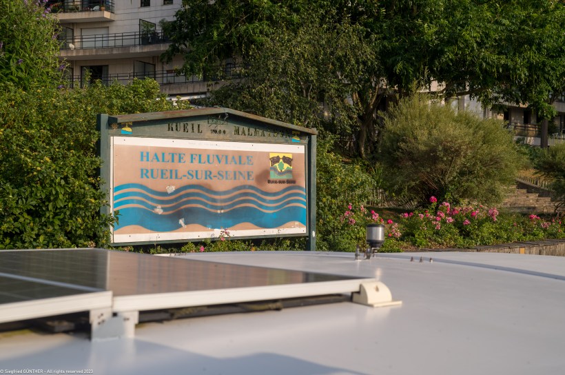 Auf etwa halber Strecke liegt die beliebte „Halte fluviale de Rueil-Malmaison„. Flussabwärts liegt sie 5km vor der Schleuse von Bougival, im Seine-Arm „Bras de Marly“. Am rechten Ufer, gegenüber der Anlegestelle liegt die Isle des impressionnistes. Sie hat einige bekannte Maler inspiriert, wie Monet ou Renoir.