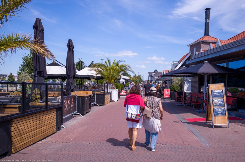 In Elburg war der sommerliche Trubel im wesentlichen auf das historische Stadtzentrum beschränkt. Hier in Harderwijk sorgt das nahegelegene Delfinarium für einen permanenten Touristenstrom im Hafen.
