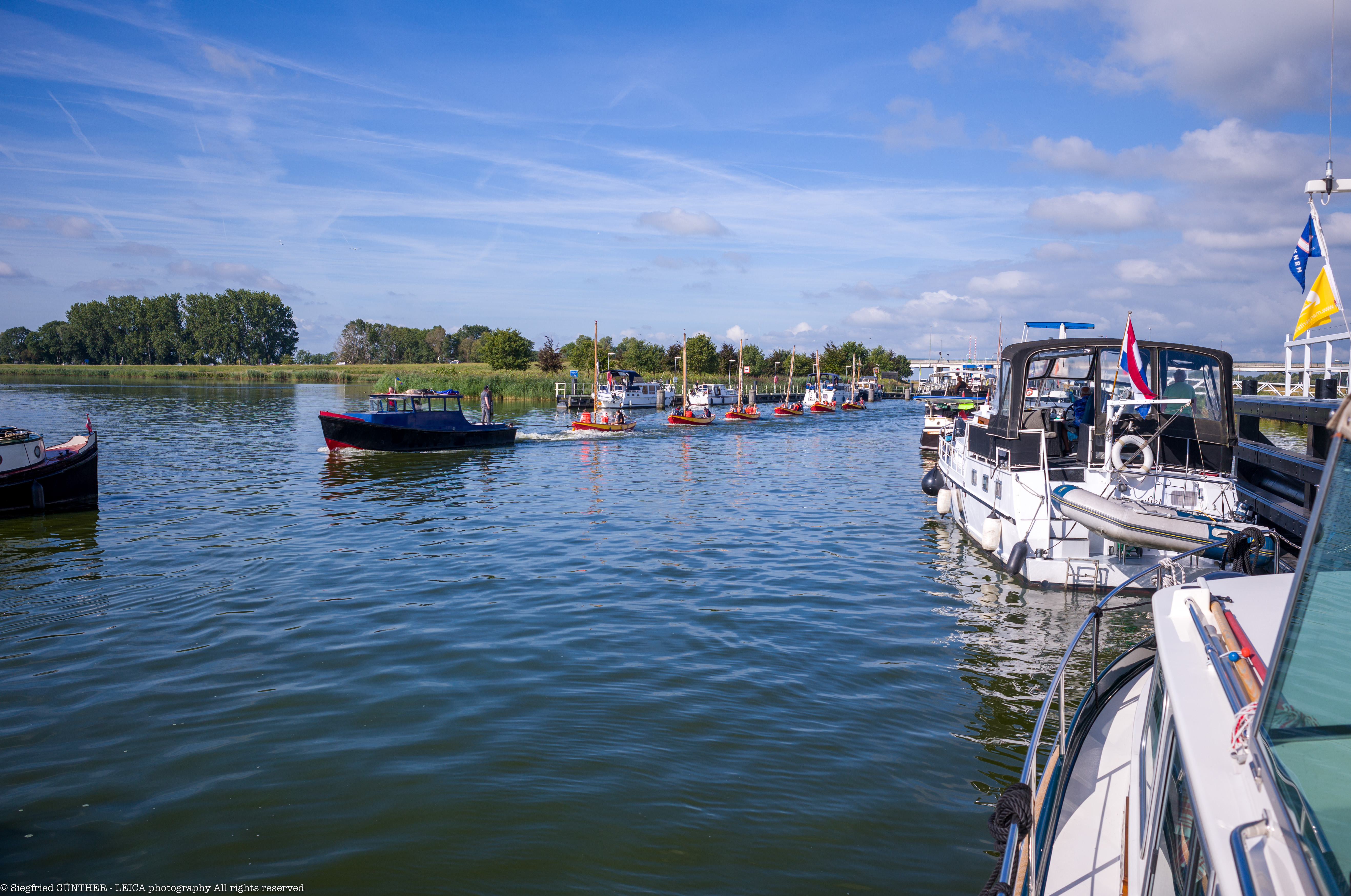Als wir die zweite Schleuse verlassen, es sind noch gut 30′ bis Elburg, beginnt ein regelrechtes Rennen um die „besten Plätze“. Gasgeben heisst jetzt die Devise. Einige vergessen dabei die guten alten Seemannssitten.