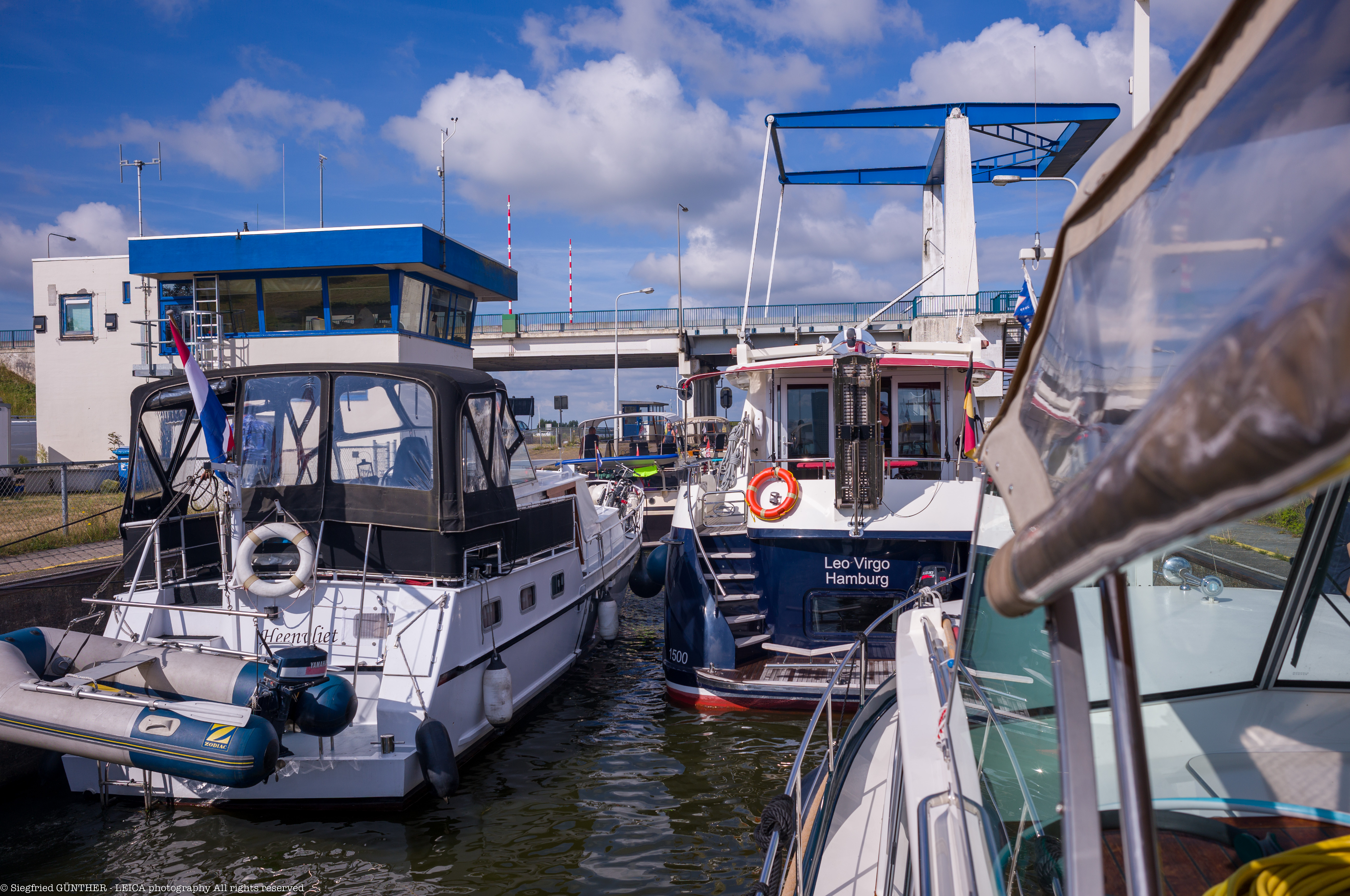 Wir verlassen den Ketelhaven gegen 8h00. Wir haben die Randmeren noch nicht erreicht, schon werden wir eingeholt und überholt. An den beiden Schleusen, die heute auf unserem Weg liegen, sammeln sich immer mehr Schiffe auf beiden Seiten.