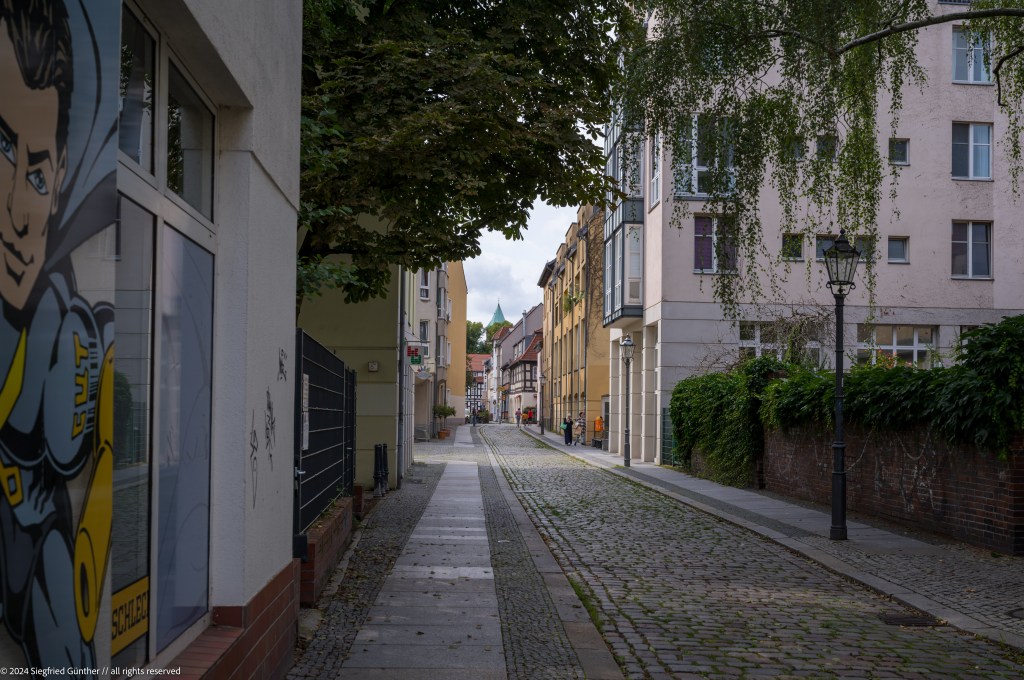 Ein altes Hafenbecken, Kräne aus einer anderen Zeit und ehemalige Lagerhäuser, in denen man heute Geschäfte, Restaurants und Wohnungen findet. Erwähnenswert ist die ehemalige Druckerei des Ullstein-Verlags gegenüber, heute ein modernes Bürogebäude.