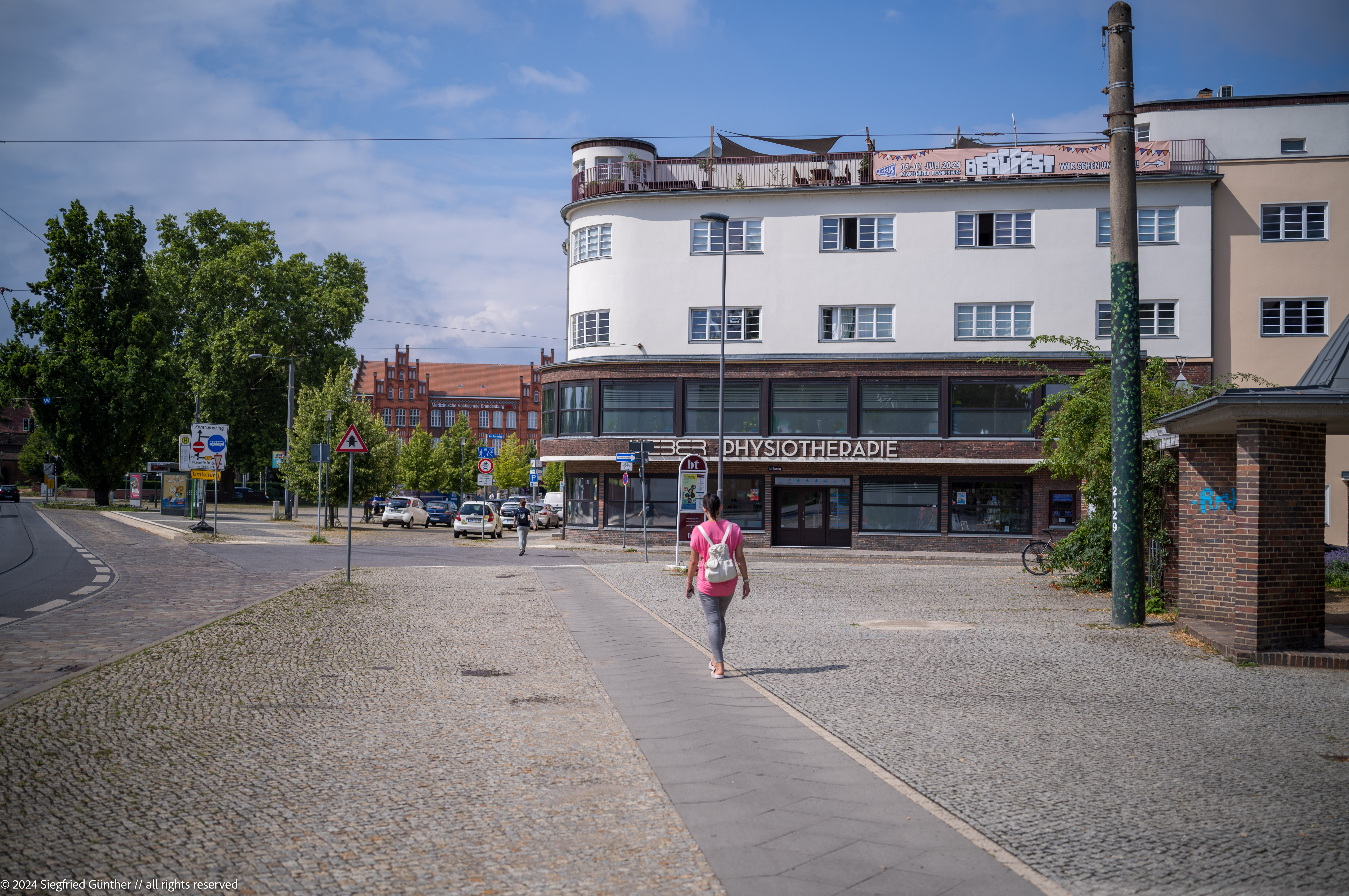 Ein altes Hafenbecken, Kräne aus einer anderen Zeit und ehemalige Lagerhäuser, in denen man heute Geschäfte, Restaurants und Wohnungen findet. Erwähnenswert ist die ehemalige Druckerei des Ullstein-Verlags gegenüber, heute ein modernes Bürogebäude.