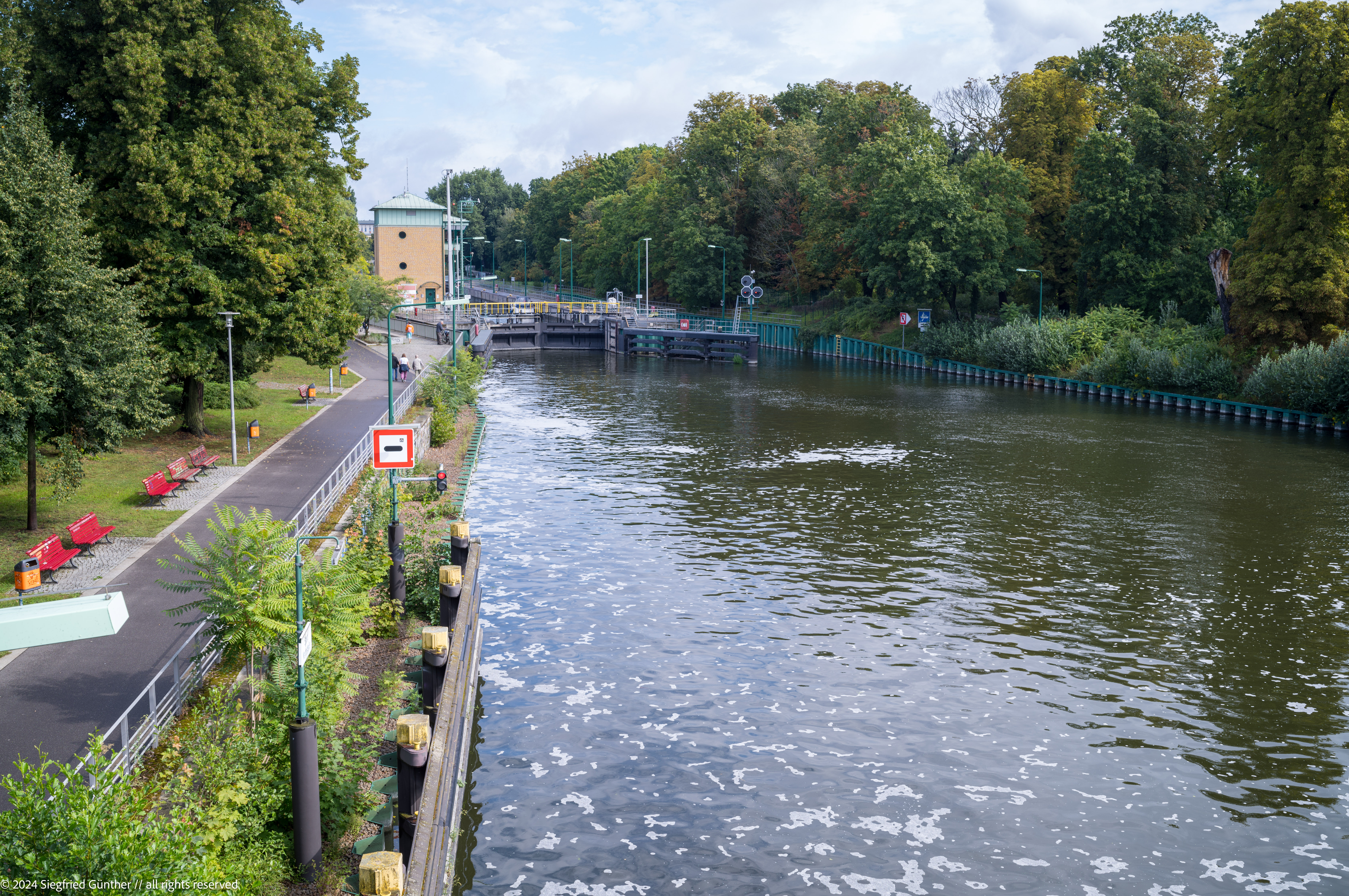 Nach einer halben Stunde Fahrt erreichen wir die Schleuse Mühlendamm, wo wir unverzüglich geschleust werden.