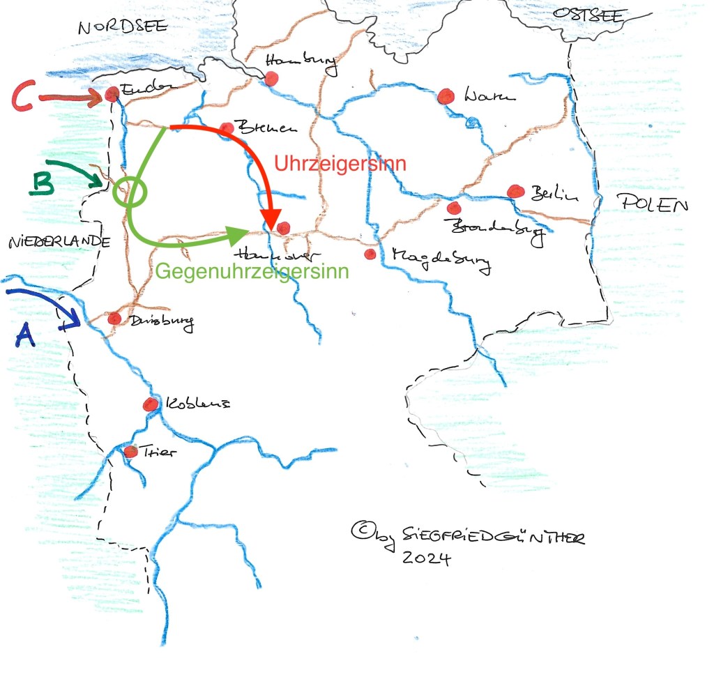 Noch im Juni hatten wir vor via Bremen im Uhrzeigersinn über die Weser Richtung Mittelland-Kanal zu fahren,…