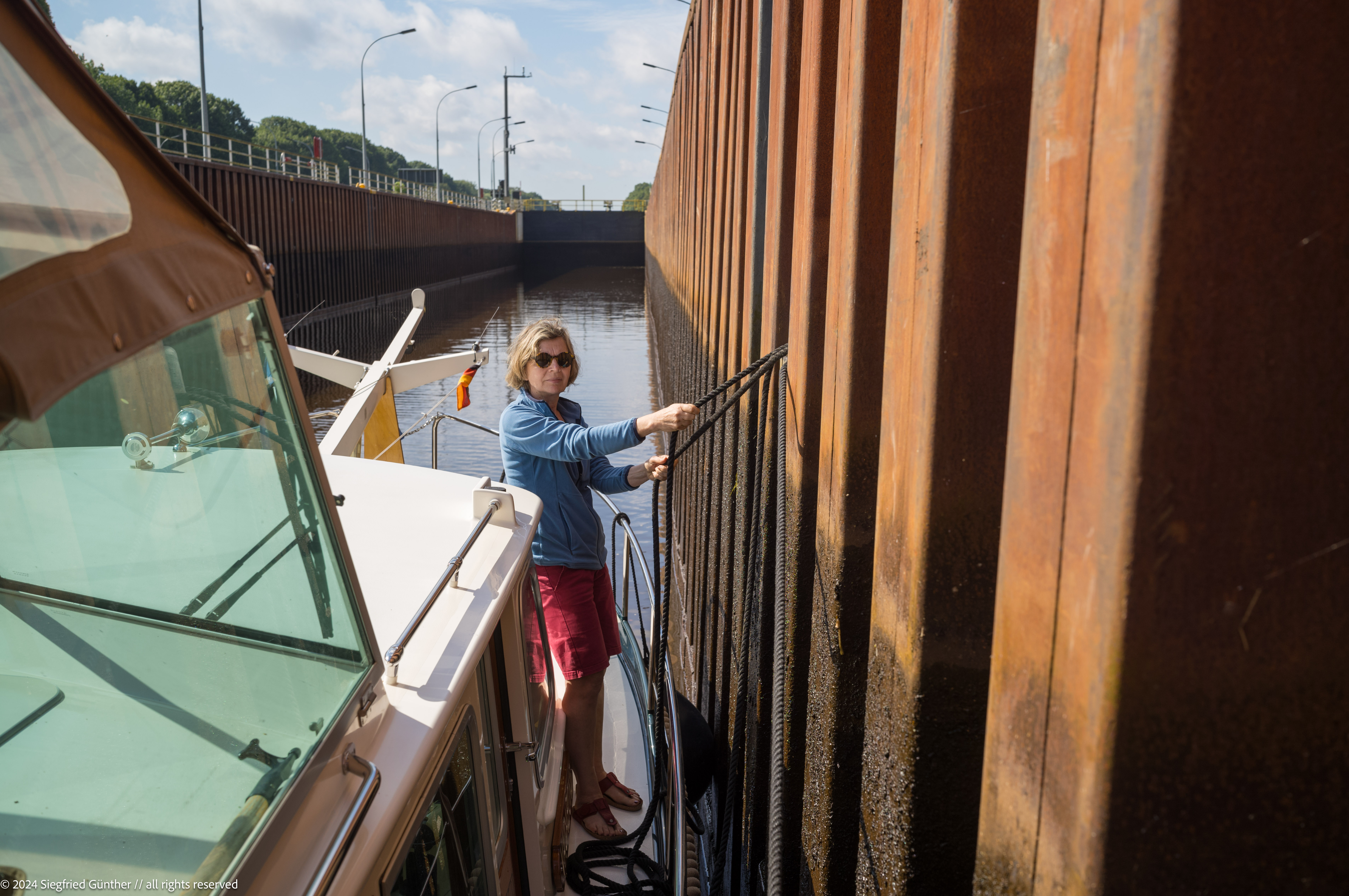 Wir melden uns über Funk frühzeitig an den Schleusen an. Die Schleusenwärter erweisen sich als sehr freundlich. So kommen wir zügig voran.