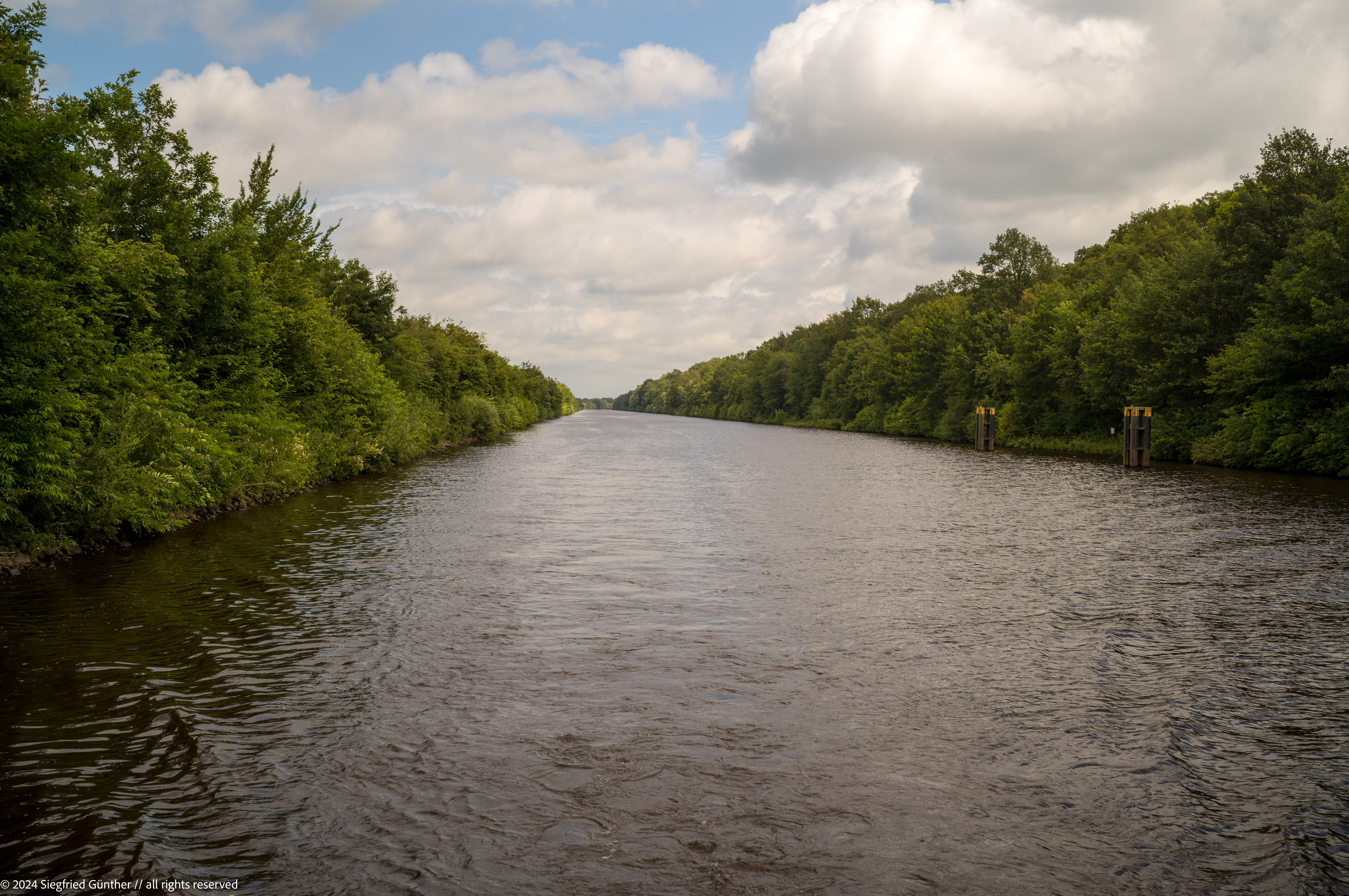 Der Küstenkanal ist ein Vorgeschmack zum Mittellandkanal. Auf den fast 70km gibt es kaum Abwechslung. Von der umliegenden Landschaft sieht man wenig. Der Kanal ist zum grössten Teil von Bäumen und Hecken gesäumt.