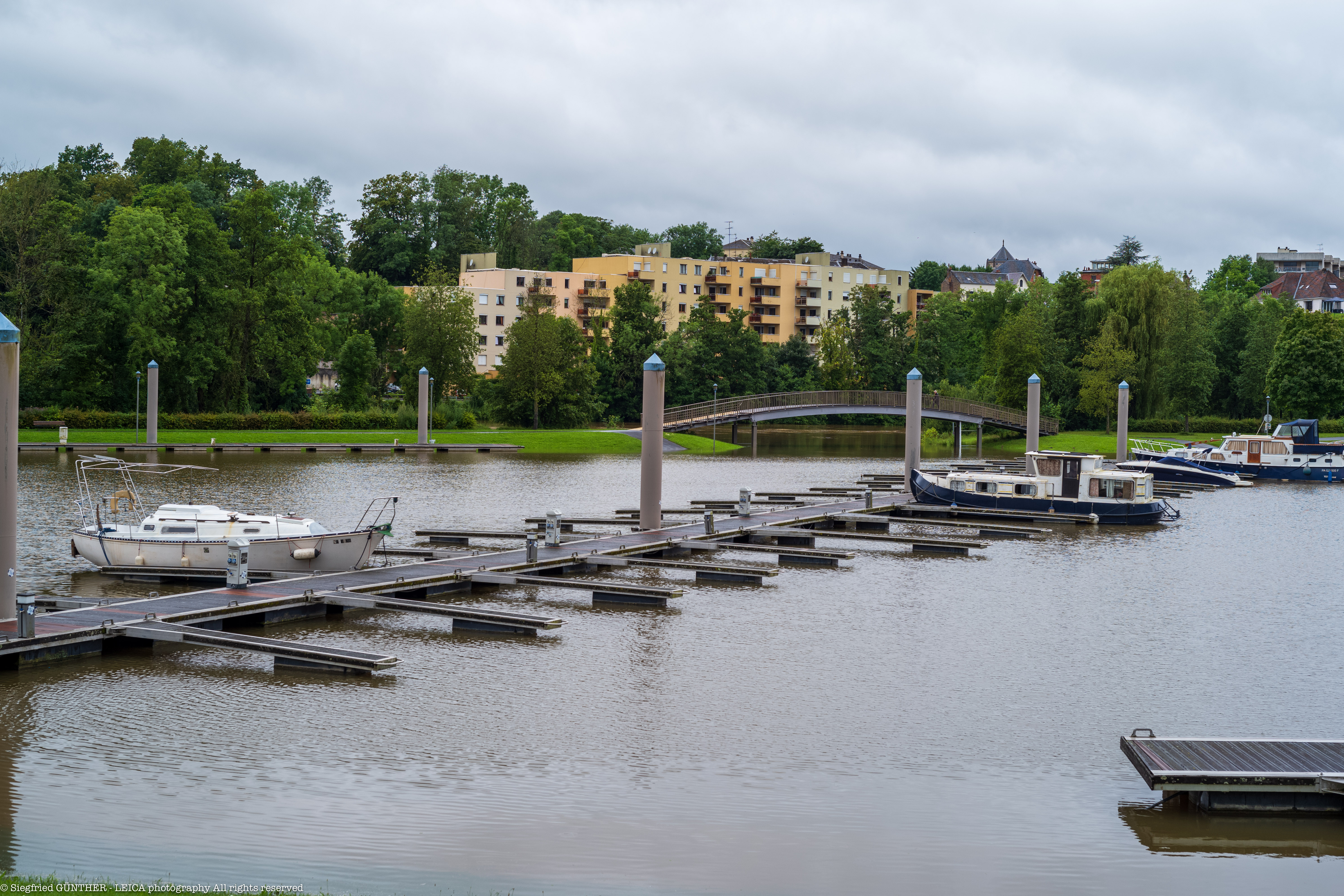 Seit gestern sind wir in Charleville im Hafen. Bei der Ankunft heißt es zunächst, das Cabrio abbauen; denn die Durchfahrthöhe zum Hafen ist auf 3m beschränkt. Allerdings sind es zur Zeit eher 3,50m, da der Wasserstand wegen der Arbeiten sehr niedrig ist. Die Anlegeplätze außerhalb des Hafens, direkt auf der Maas, sind alle schon belegt.