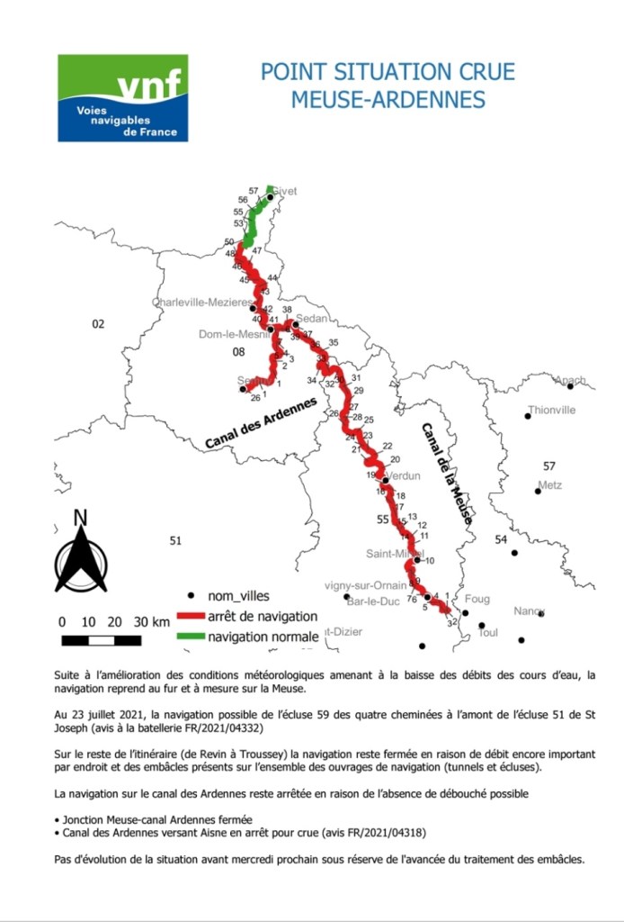 dans la suite des opérations de remise en exploitation du canal de la Meuse après les épisodes de crues hivernales, sont informés de la situation du réseau sur cet itinéraire.