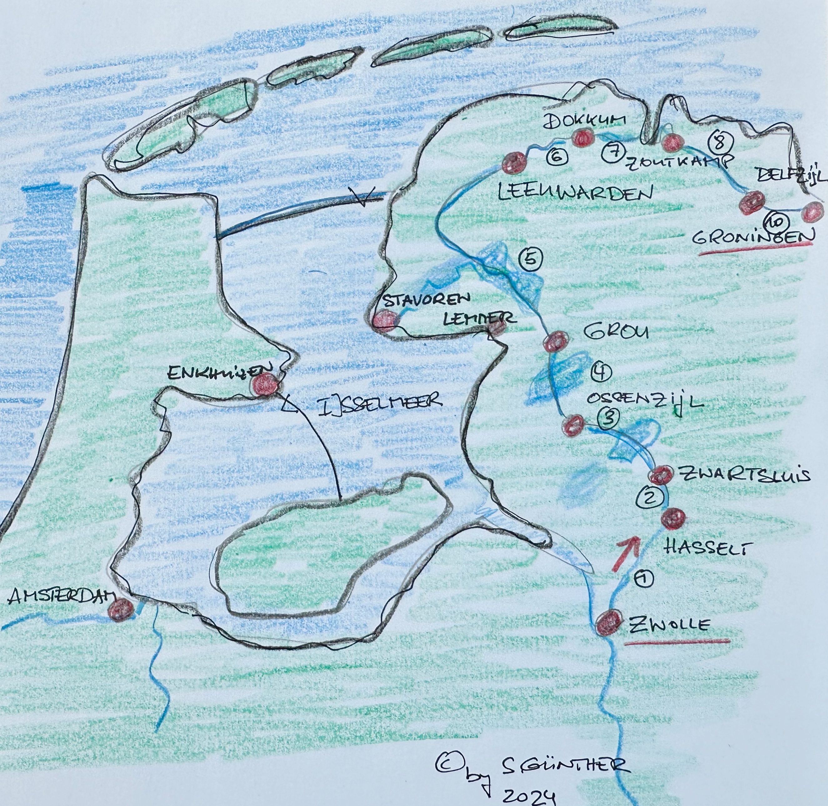 Für die Strecke von Zwolle nach Groningen sehen wir 8 Etappen vor.