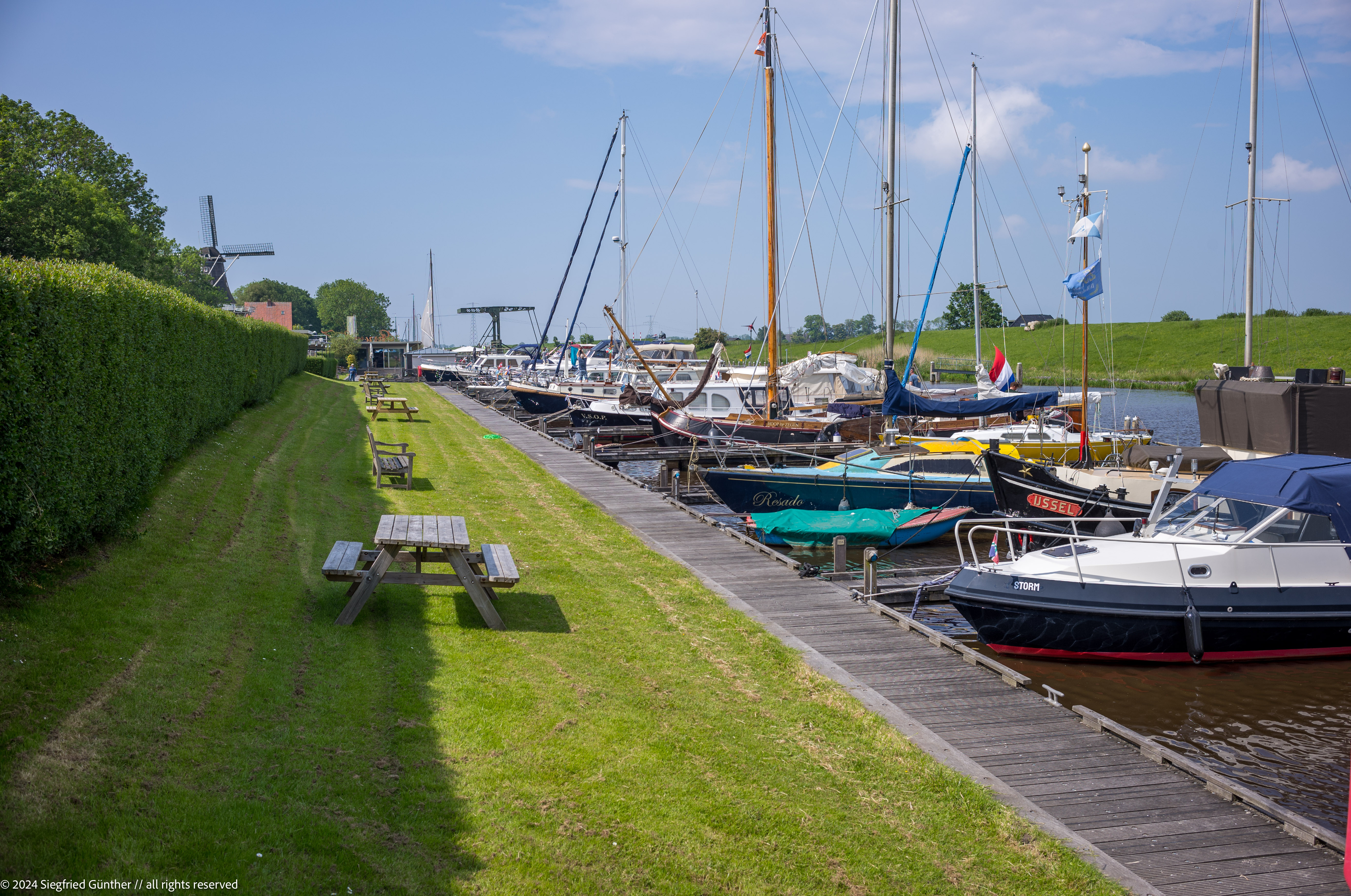 Zusammen mit drei anderen Booten ziehen wir weiter. Bis Groningen ist es noch ein Stück. Der Wetterbericht hat für den späten Nachmittag eine Gewitterwarnung ausgegeben. Daher entscheiden wir uns, für eine Nacht in Garnwerd man Zee zu bleiben. Hier gibt es einen ruhigen kleinen Hafen im Reitdiep.