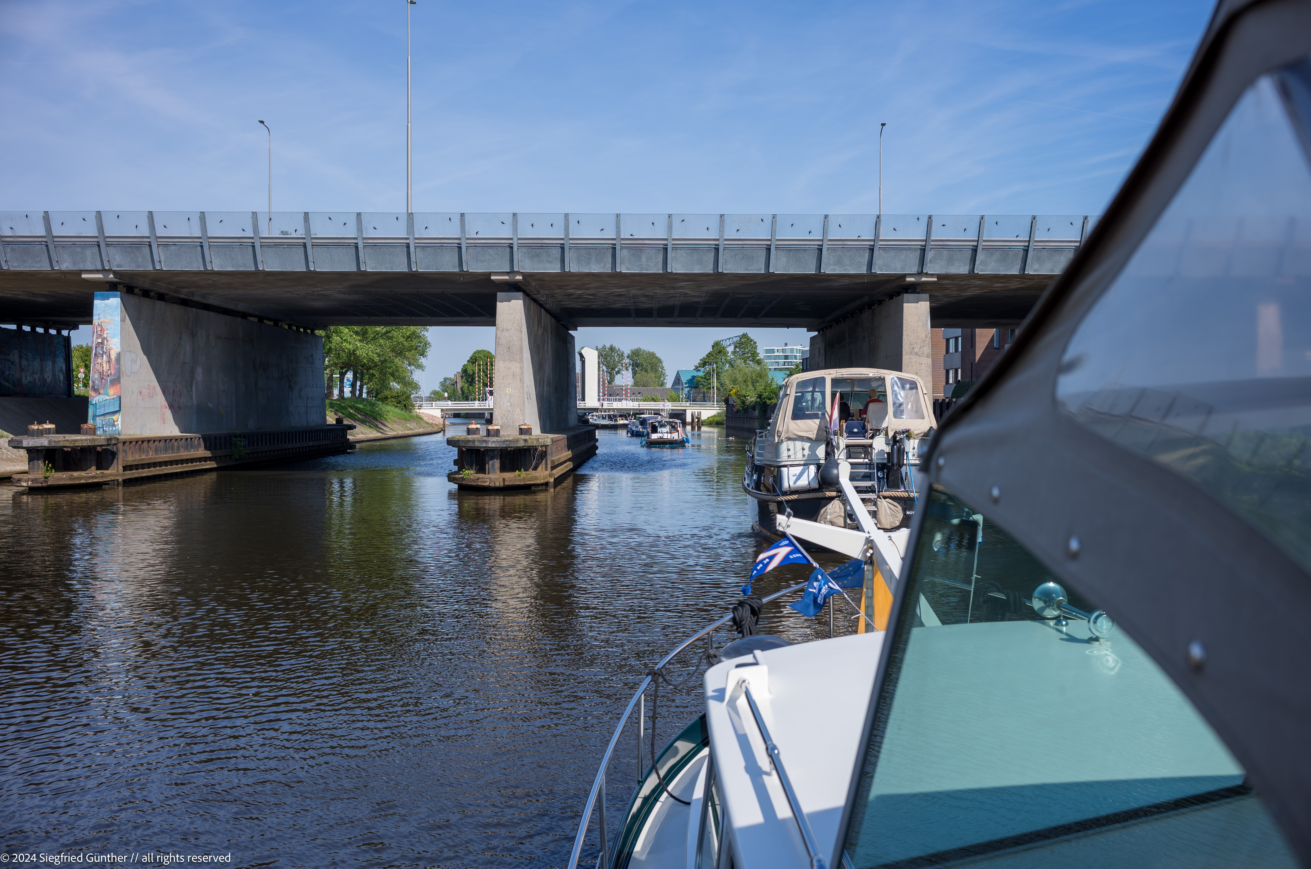 Kurz vor 10h, nach 4 schönen Tagen, verlassen wir Zwolle im Konvoi mit 8 Schiffen. Sonntags werden die Brücken von 10 – 18h gehoben.